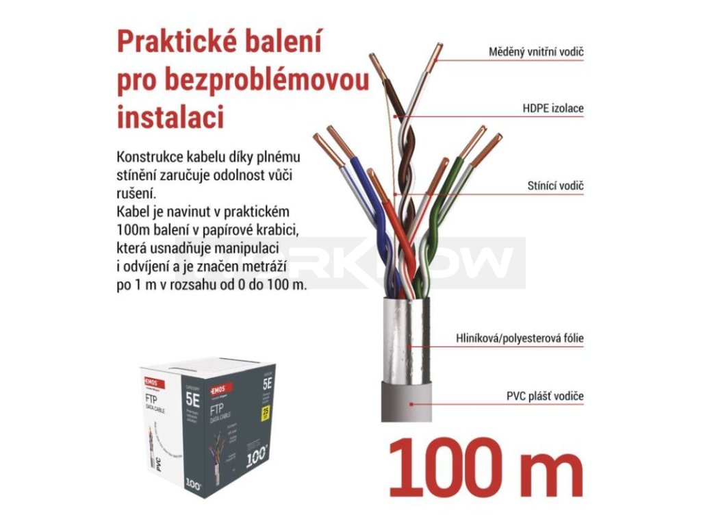 | Značení kabelu: | FTP Cat5E PVC 1 – 100 m |