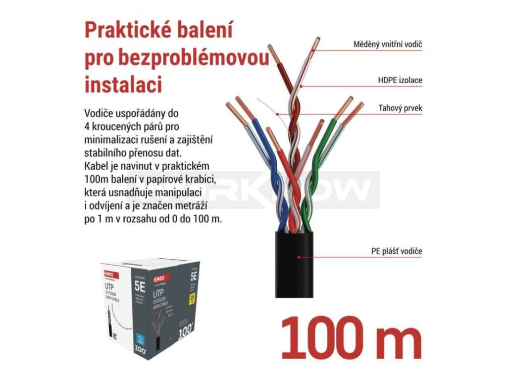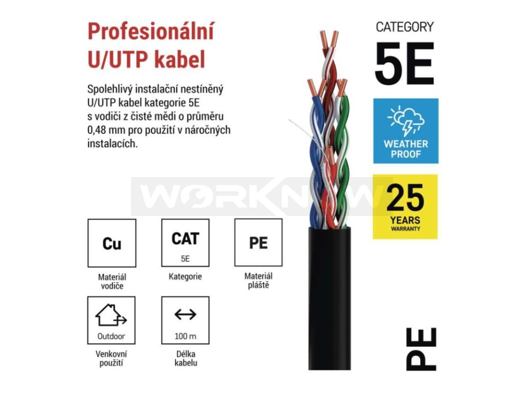 | Značení kabelu: | UTP Cat5E PE OUTDOOR 1 – 100 m |