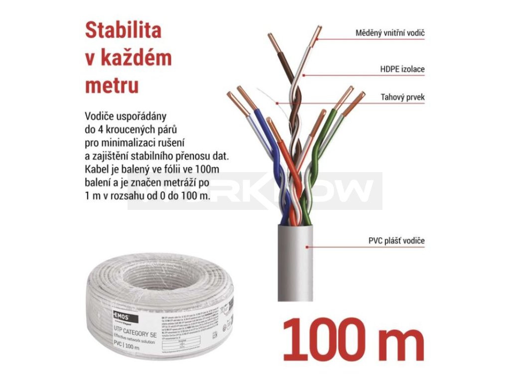 značení kabelu: UTP Cat5E PVC 1 – 100 m