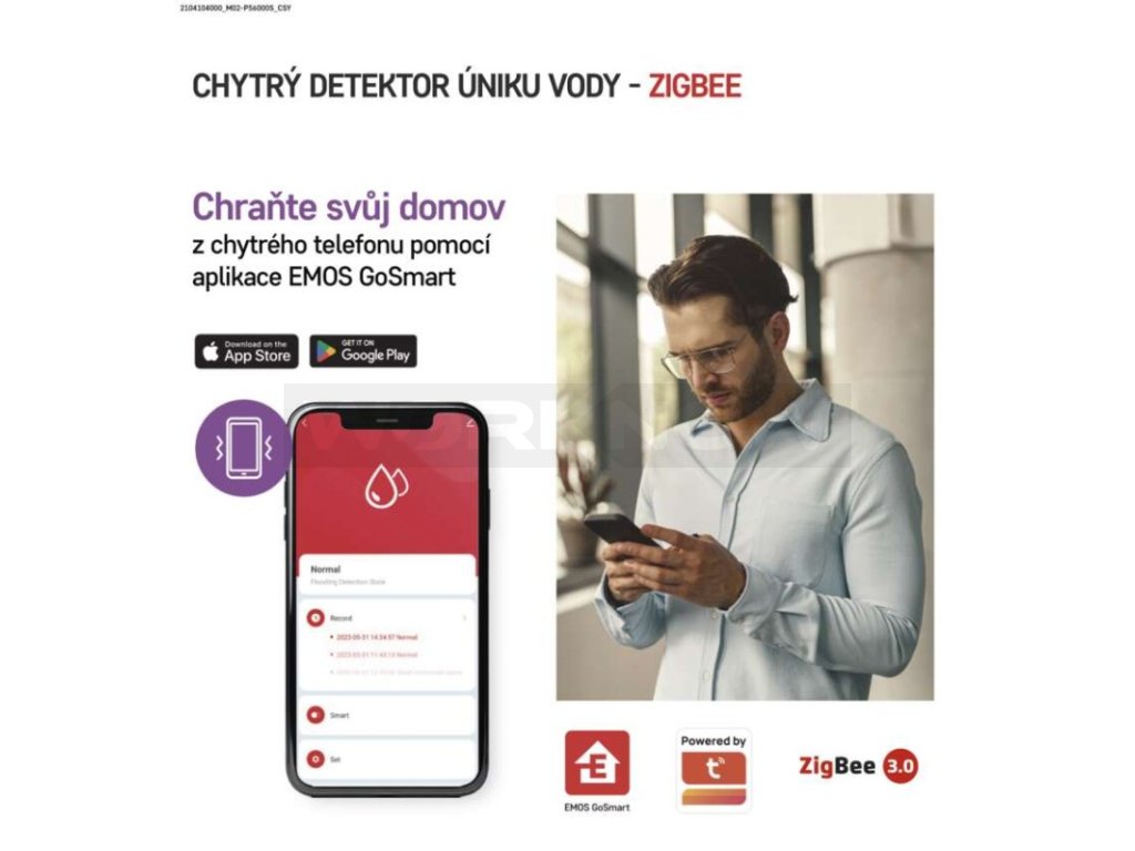 Ovládání pomocí mobilní aplikace TUYA přes chytré telefony nebo tablety (iPhone, Android). Okamžité upozornění v aplikaci v případě úniku vody.