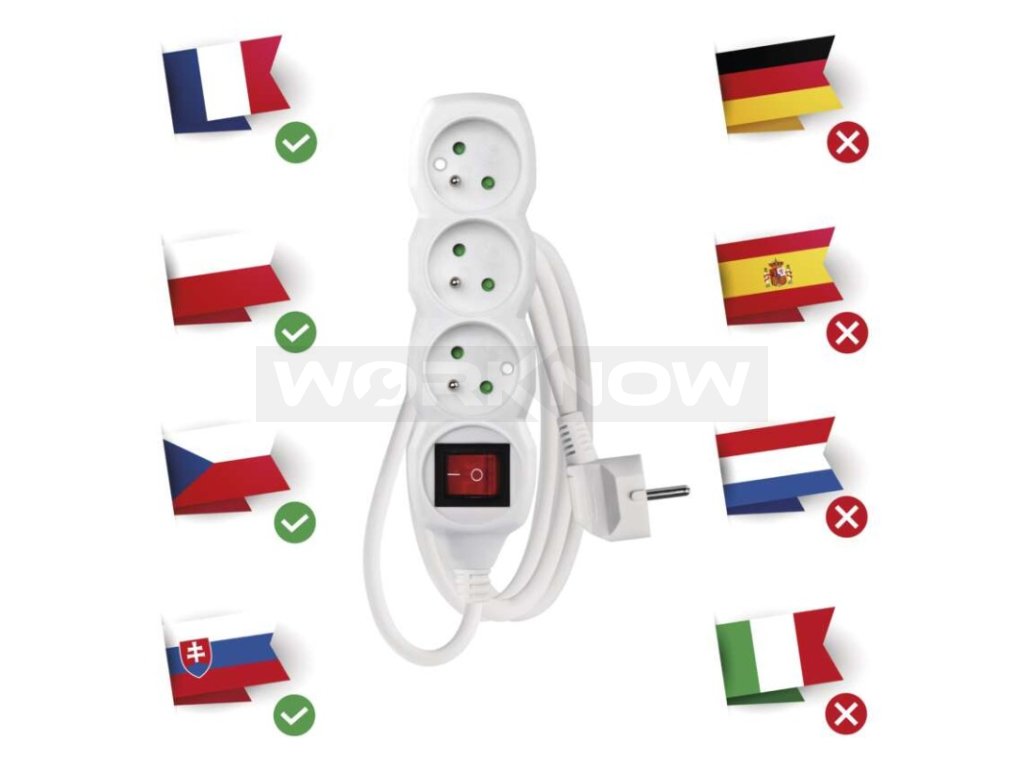 Prodlužovací kabel 1,5 m / 3 zásuvky / s vypínačem / bílý / PVC / 1 mm2 P13115