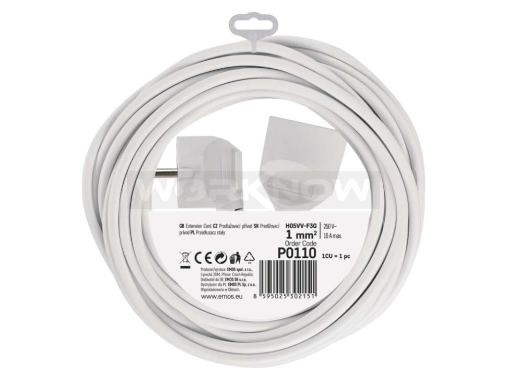 Prodlužovací kabel 10 m / 1 zásuvka / bílý / PVC / 1 mm2 P0110