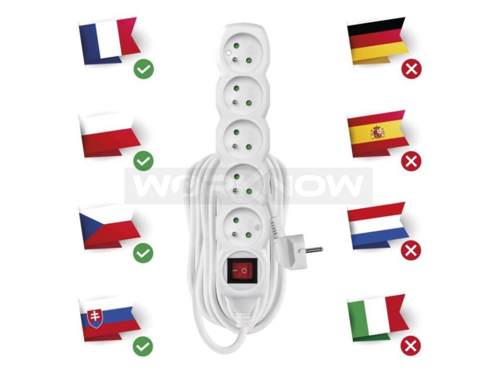 Prodlužovací kabel 10 m / 5 zásuvek / s vypínačem / bílý / PVC / 1,5 mm2 P1510R