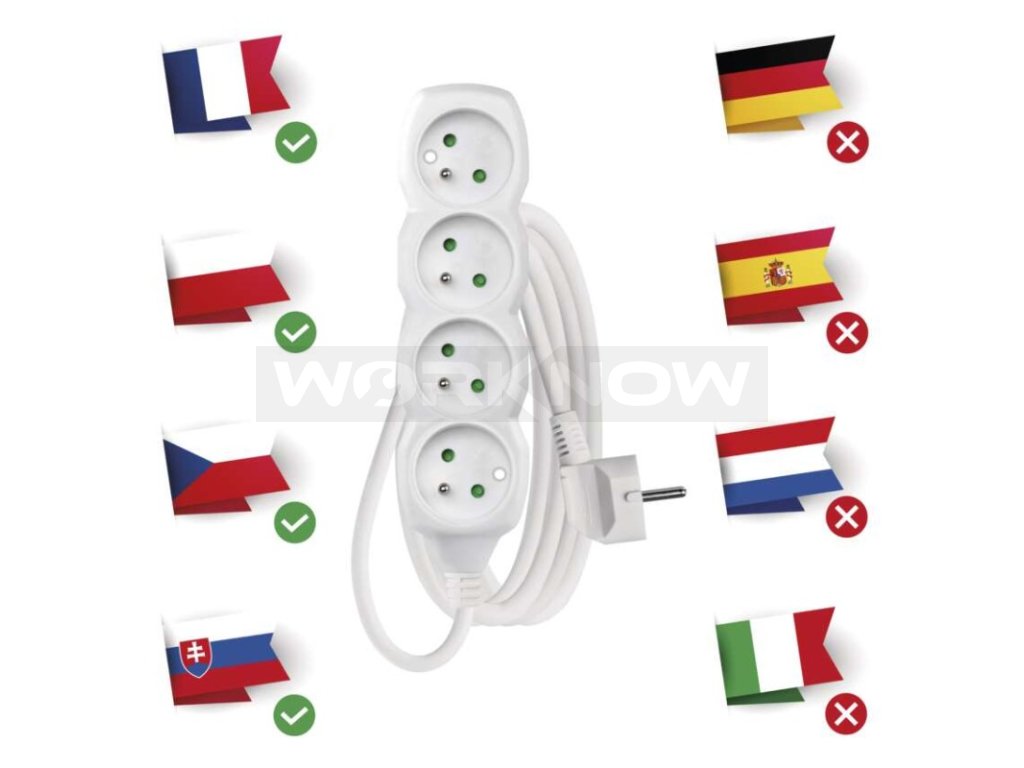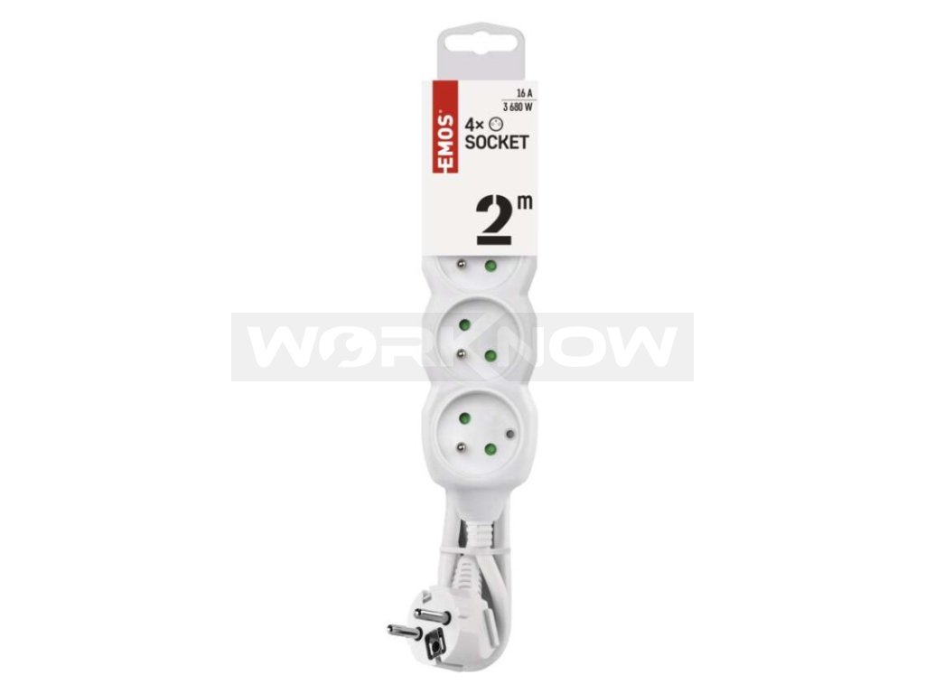Prodlužovací kabel 2 m / 4 zásuvky / bílý / PVC / 1 mm2 P0412