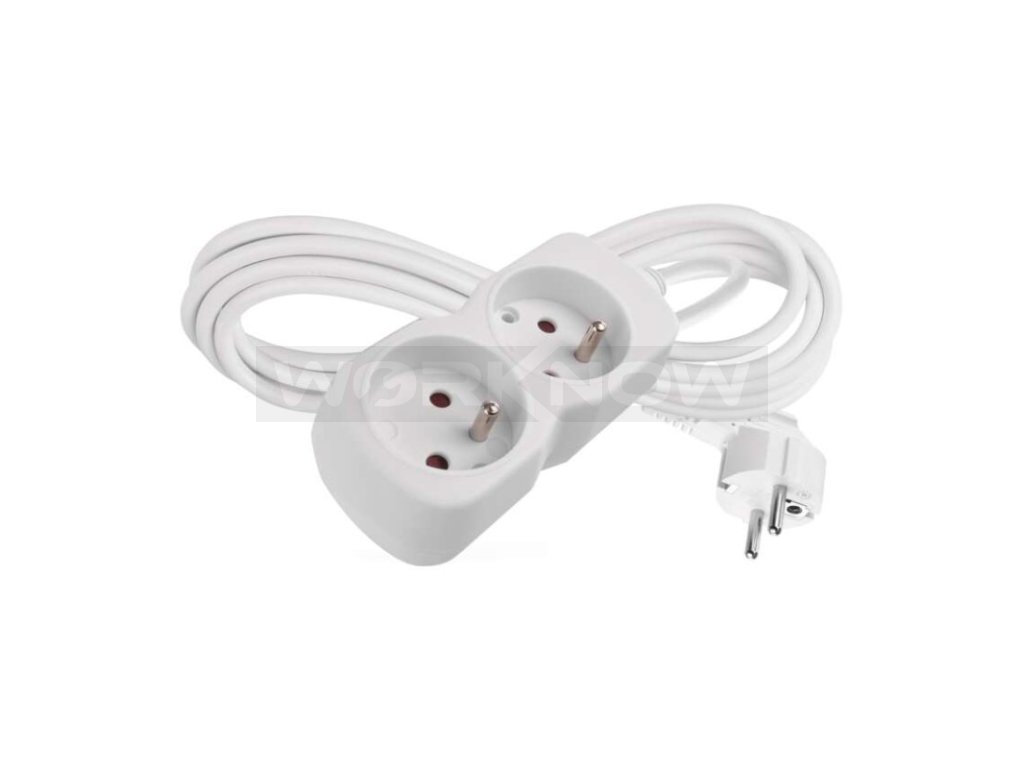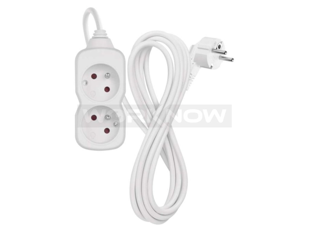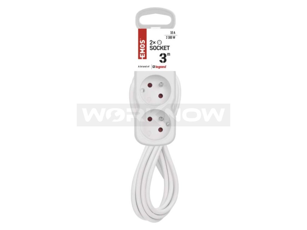 Bílý prodlužovací přívod, 2 zásuvky s dětskými clonkami a délkou 3 m. Průřezem vodiče 1 mm2. Vhodný pro maximální zátěž 10 A max.Při montáži na stěnu je nutné použít vrut se zápustnou hlavou PZ max. průměr 2,5–3 mm, délka 30–40 mm. V případě použití jiného průměru hrozí poškození plastové části otvoru. Pokud dojde k poškození plastové části otvoru, prodlužovací přívod nepoužívejte.