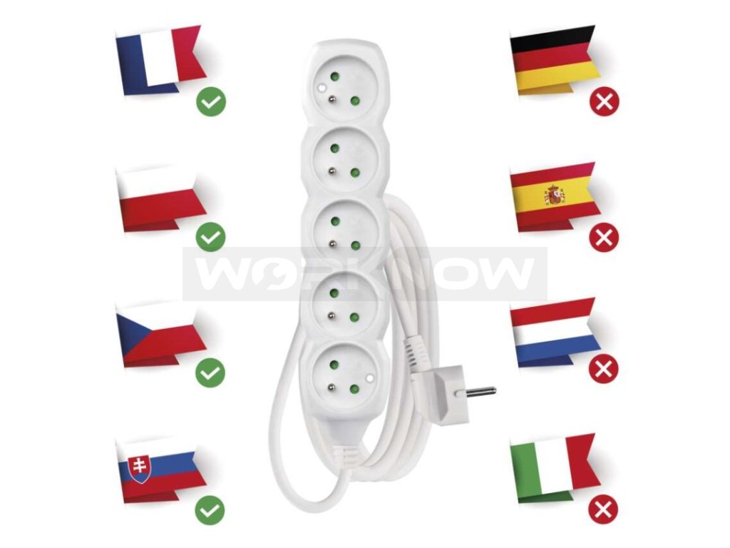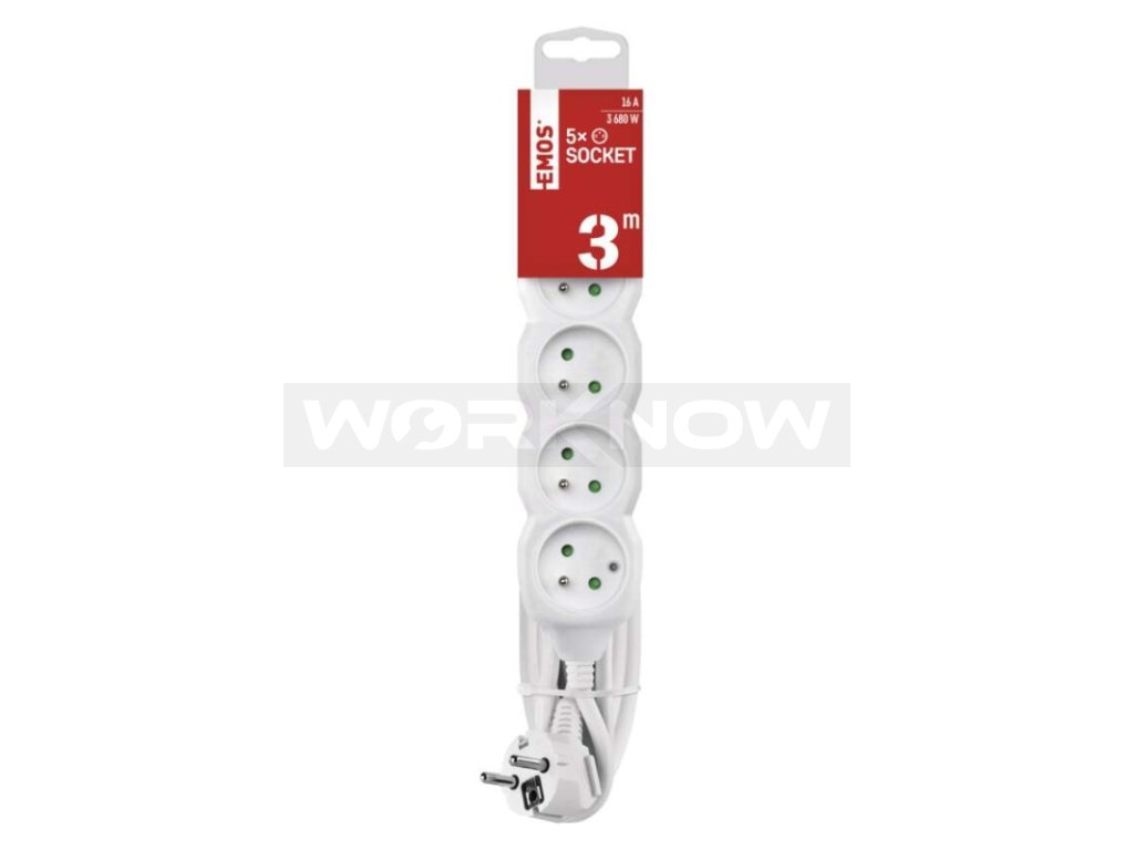 Prodlužovací kabel 3 m / 5 zásuvek / bílý / PVC / 1,5 mm2 P0513R