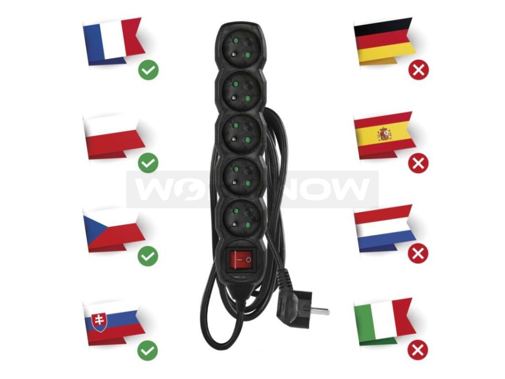 Prodlužovací kabel 3 m / 5 zásuvek / s vypínačem / černý / PVC / 1 mm2 PC1513