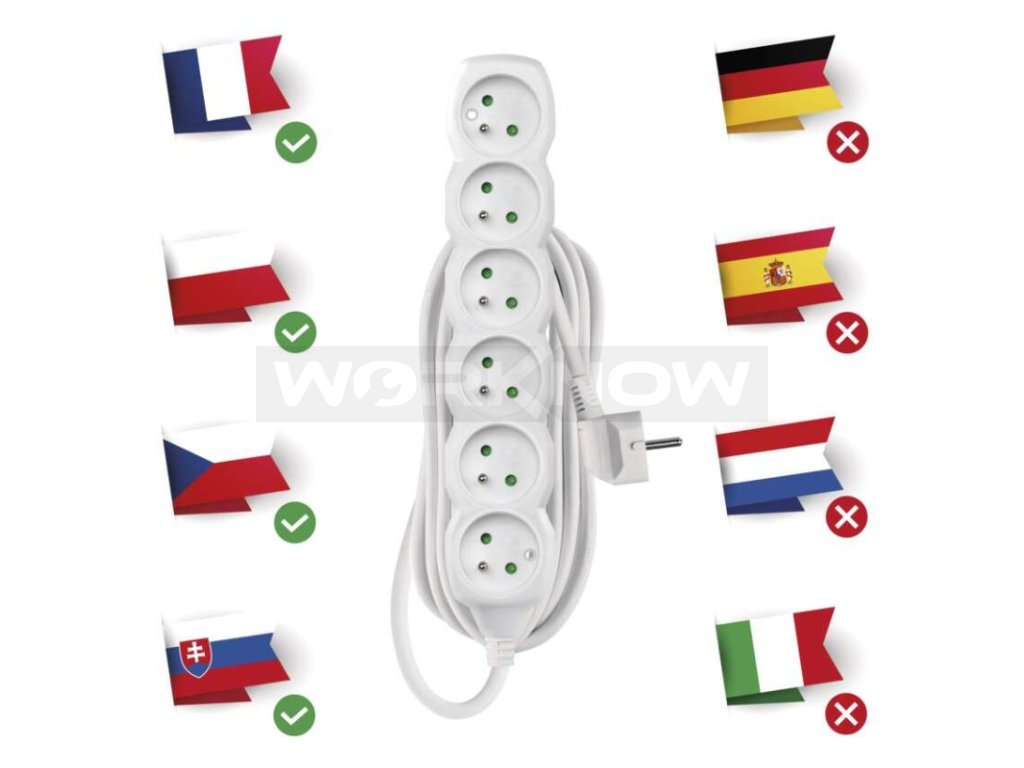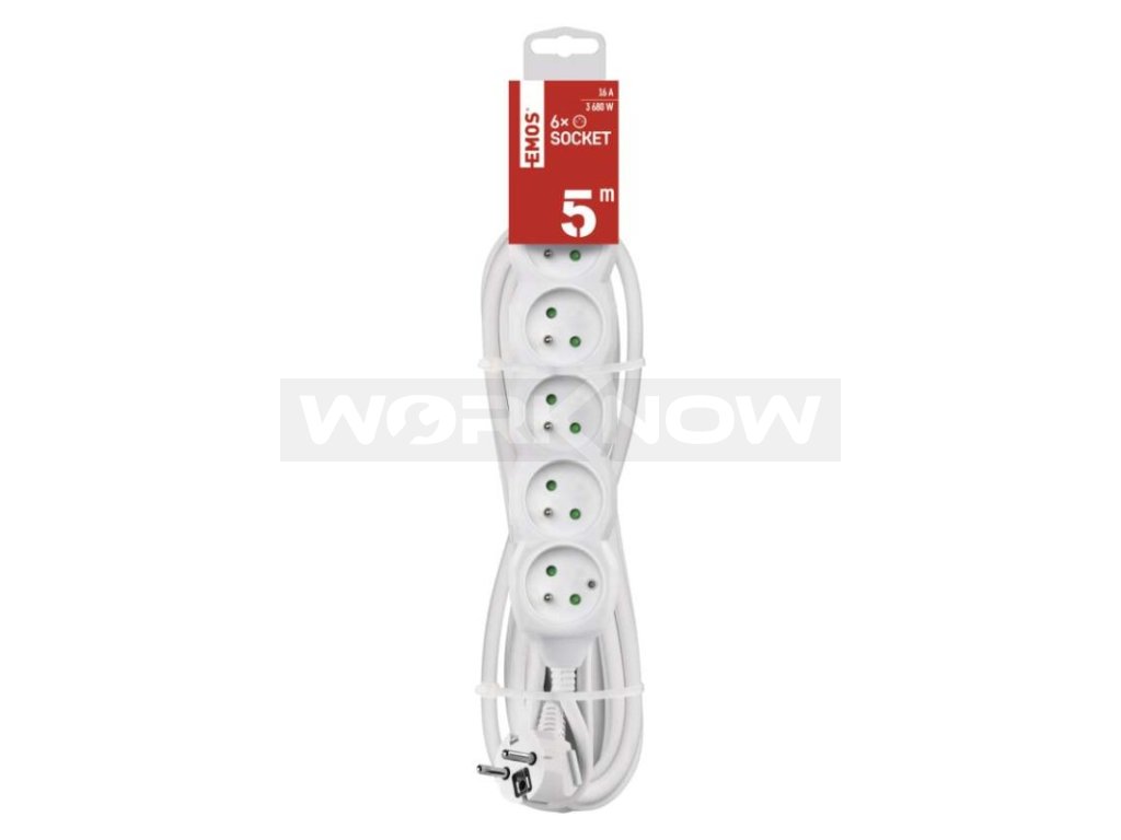 Prodlužovací kabel 5 m / 6 zásuvek / bílý / PVC / 1,5 mm2