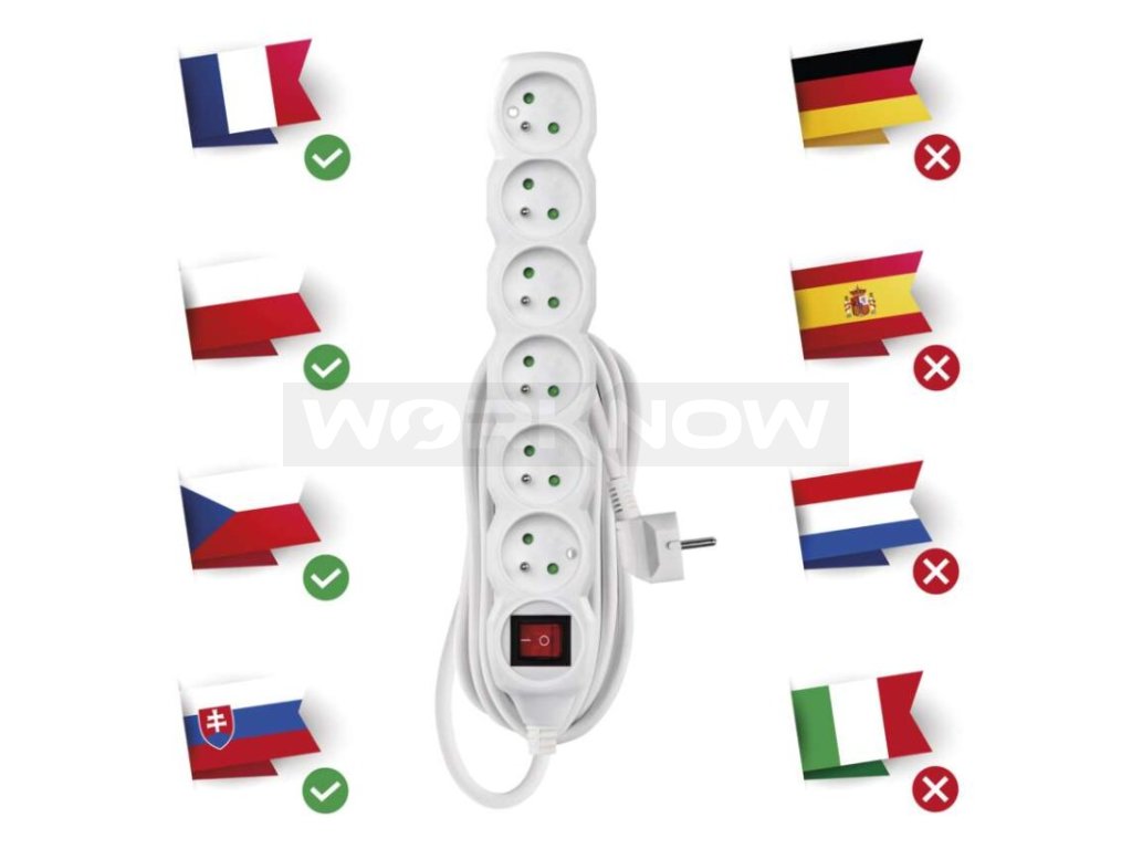 Prodlužovací kabel 5 m / 6 zásuvek / s vypínačem / bílý / PVC / 1,5 mm2
