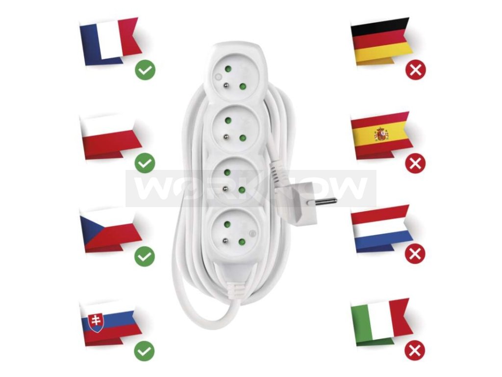Při montáži na stěnu je nutné použít vrut se zápustnou hlavou PZ max. průměr 2,5–3 mm, délka 30–40 mm. V případě použití jiného průměru hrozí poškození plastové části otvoru. Pokud dojde k poškození plastové části otvoru, prodlužovací přívod nepoužívejte.