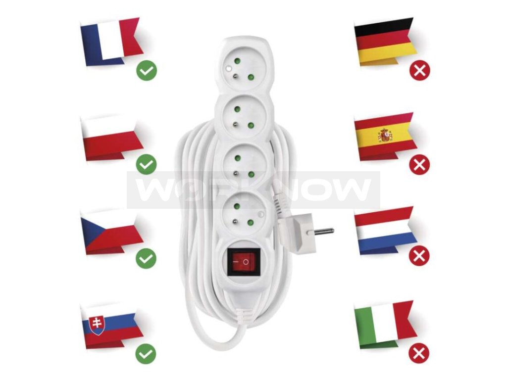 Prodlužovací kabel 7 m / 4 zásuvky / s vypínačem / bílý / PVC / 1,5 mm2