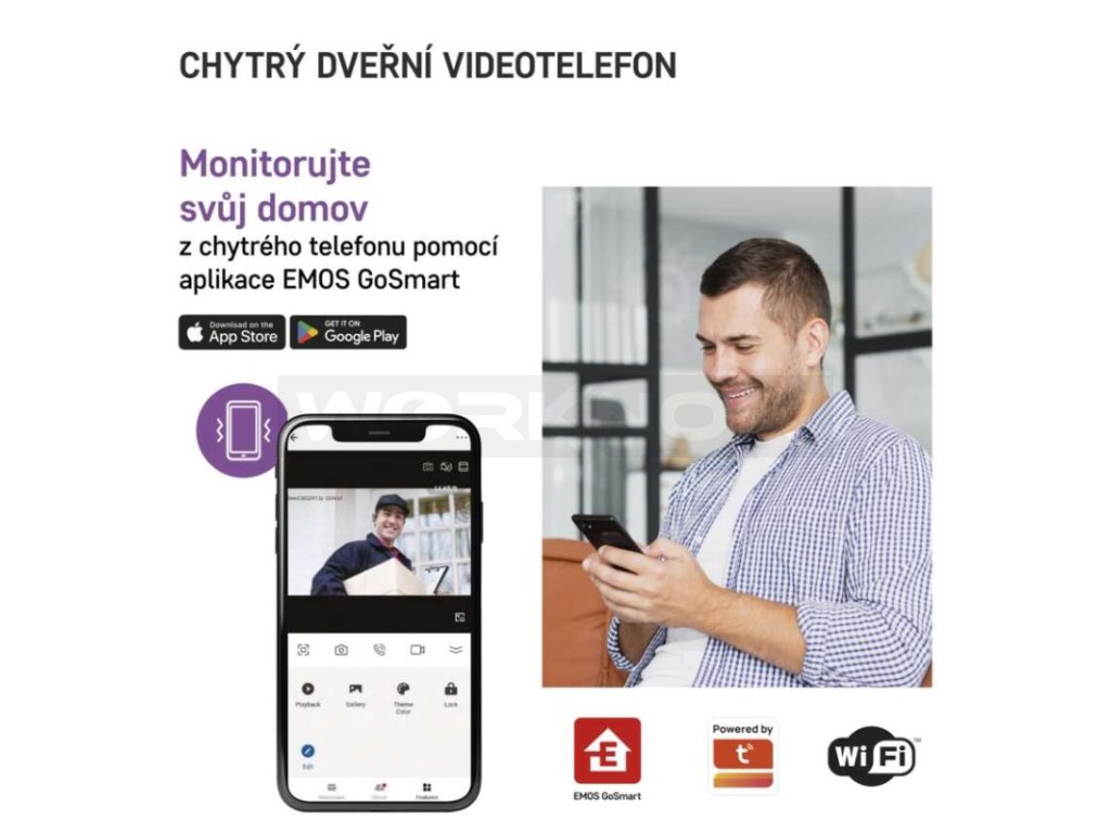 Venkovní kamerová jednotka a LCD monitor videotelefonu IP-750A jsou napájeny z 12 V zdroje, takže není třeba nabíjet nebo měnit baterie. Stačí je připojit k domácí Wi-Fi síti a spárovat s mobilní aplikací EMOS GoSmart, která je dostupná pro Android a iOS. Zařízení také podporuje hlasové ovládání přes Amazon Alexa a Google Assistant.