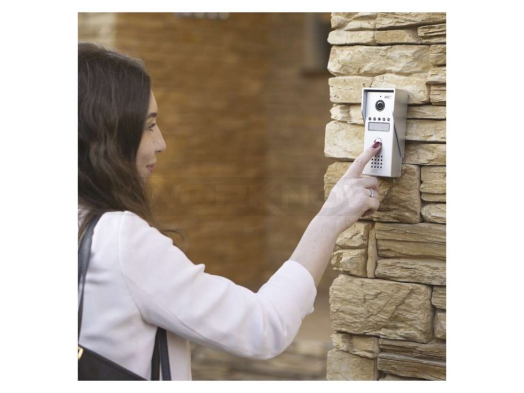 Dveřní kamerová jednotka je přizpůsobena širokému způsobu použití. Úhel jejího záběru je 80°, a tak ji můžete umístit i na nízký plot nebo tam, kde se vám to nejvíce hodí. Obraz z kamerové jednotky se vám pak přenese na 7" barevnou obrazovku.