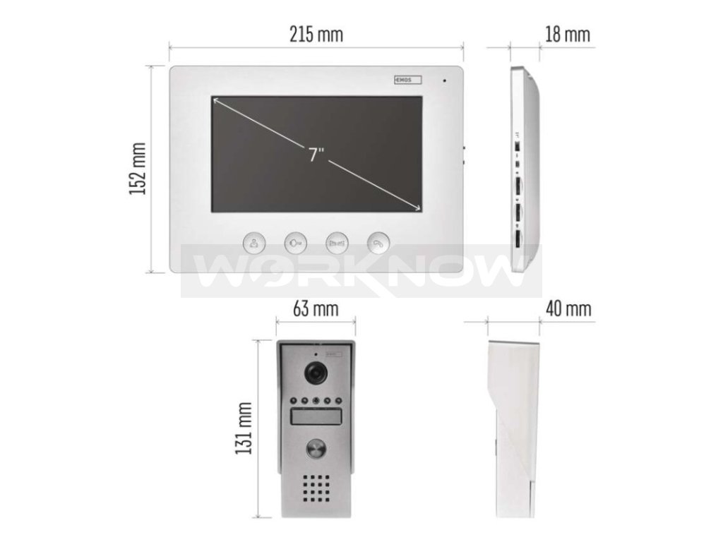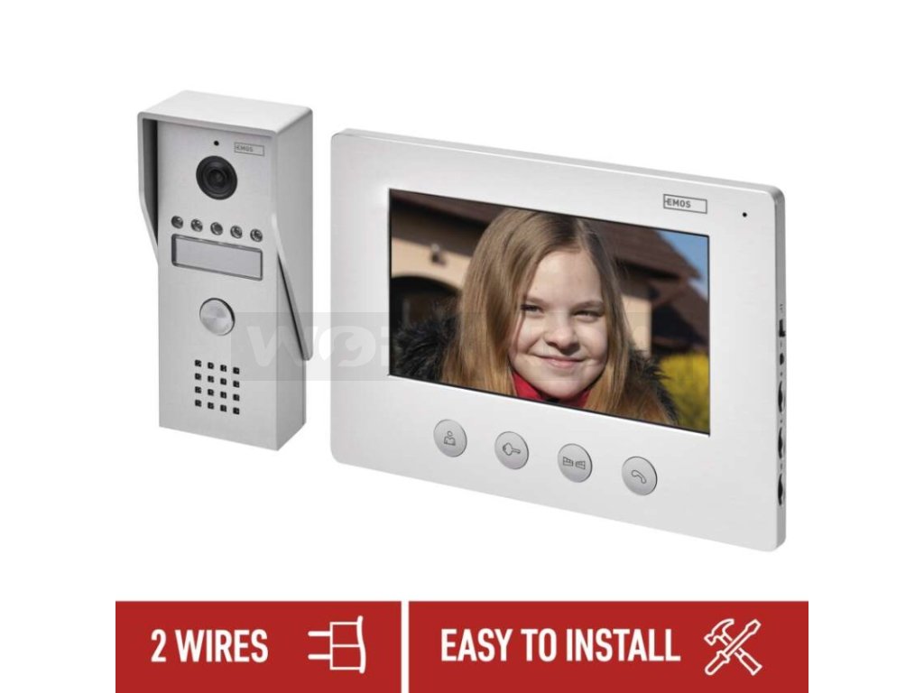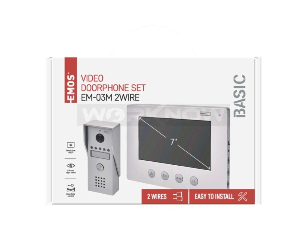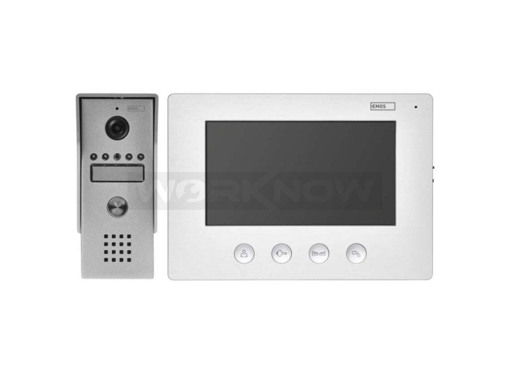 Videotelefon EMOS EM-03M poskytuje přehled o tom, kdo stojí u vchodu. S širokým úhlem záběru zobrazí příchozí i za šera a v noci. Má 7" barevnou obrazovku s vysokým rozlišením a umožňuje ovládat vchodové dveře či bránu. Snadno se montuje pomocí 2 vodičů a nabízí intuitivní ovládání a detaily jako štítek na jmenovku.