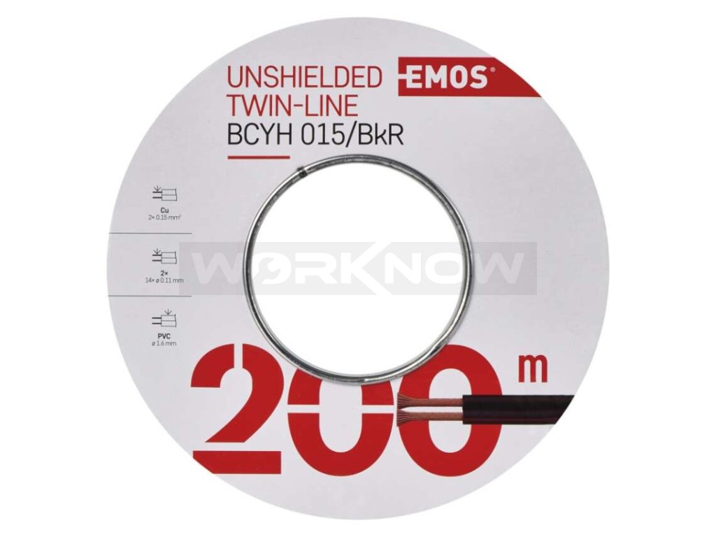 Dvojlinka nestíněná 2x0,15mm černo/rudá, 200m S8130