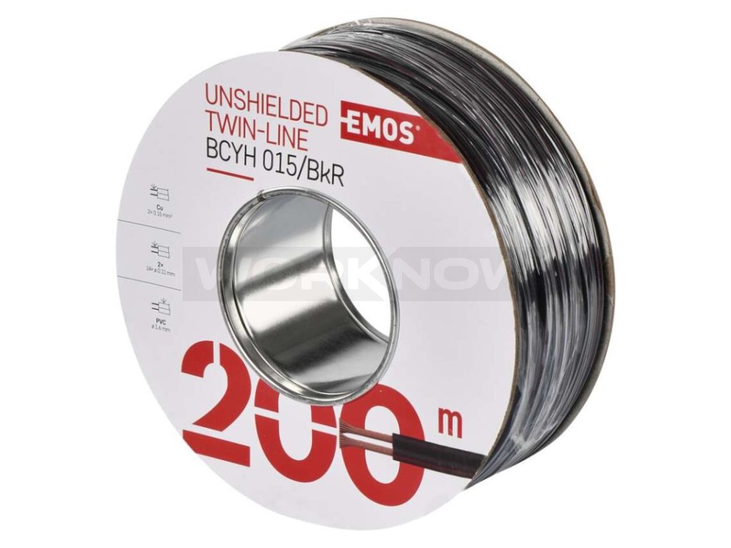 Nestíněná dvojlinka (vodič) s průřezem 2 × 0,15 mm2. Dvojlinka má černou barvu barvu izolace s jedním vodičem označeným červeným proužkem. Plášť kabelu je vyroben z PVC.