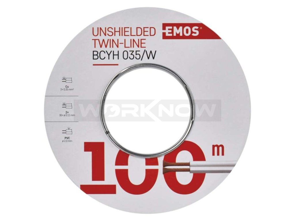 Dvojlinka nestíněná 2x0,35mm bílá, 100m S8231