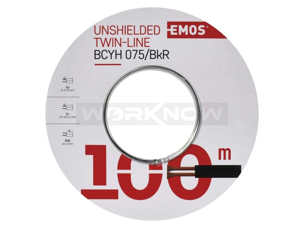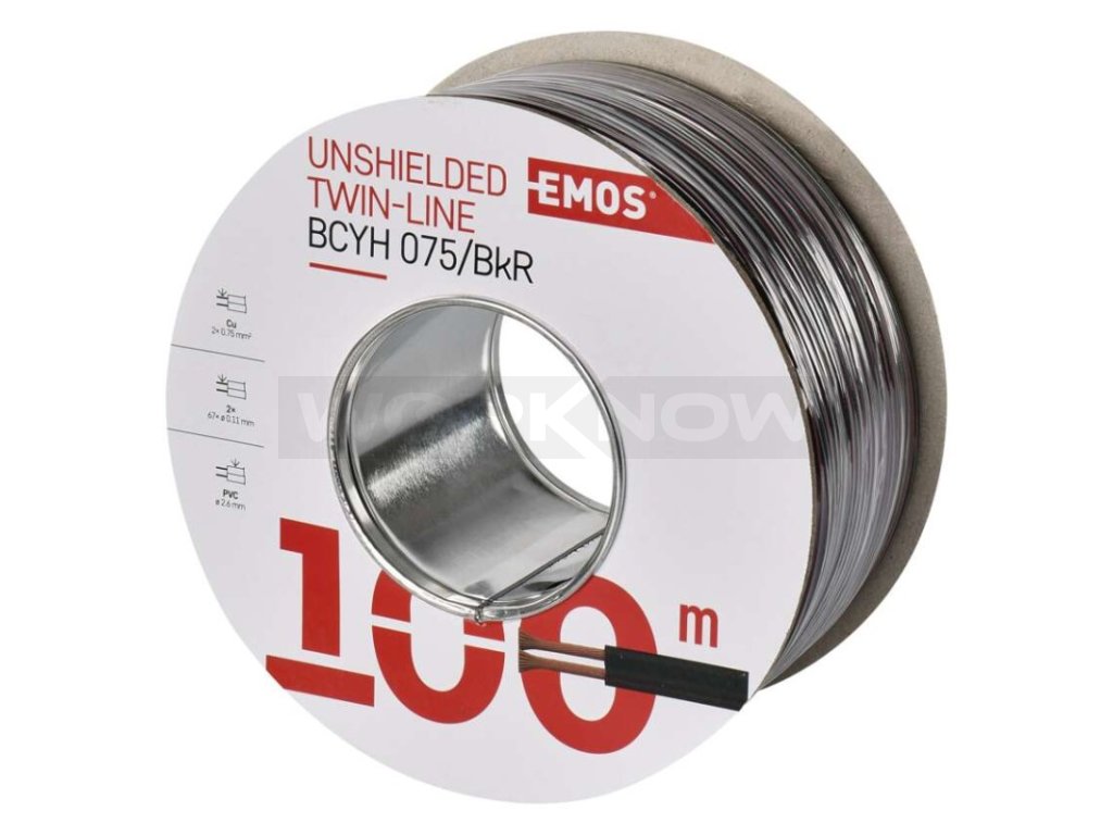 Nestíněná dvojlinka (vodič) s průřezem 2 × 0,75 mm2. Dvojlinka má černou barvu barvu izolace s jedním vodičem označeným červeným proužkem. Plášť kabelu je vyroben z PVC.