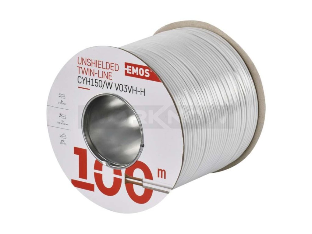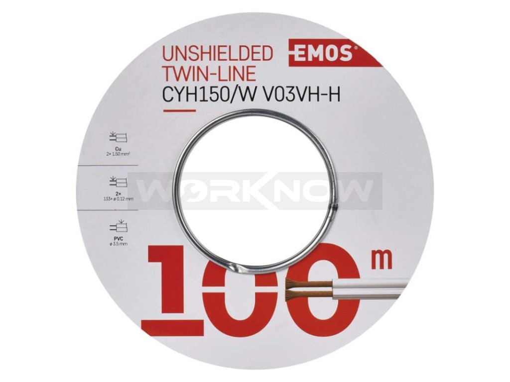 Nestíněná dvojlinka (vodič) s průřezem 2 × 1,50 mm2. Dvojlinka má bílou barvu a plášť z PVC.
