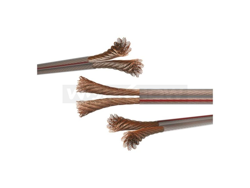 Průhledná dvojlinka z bezkyslíkaté OFC mědi (transparentní vodič) s průřezem 2 × 2,50 mm2. Tato dvojlinka je vhodná např. pro přenos audio signálu.