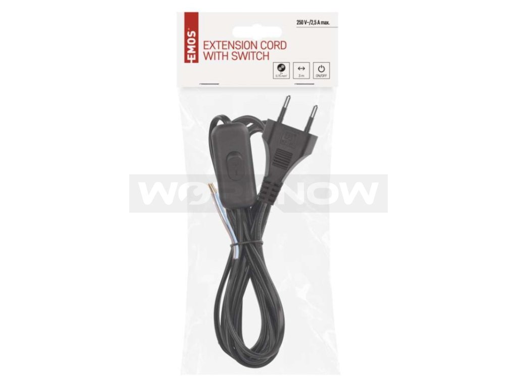 Flexo šňůra PVC 2× 0,75mm2 s vypínačem, 3m, černá S09273