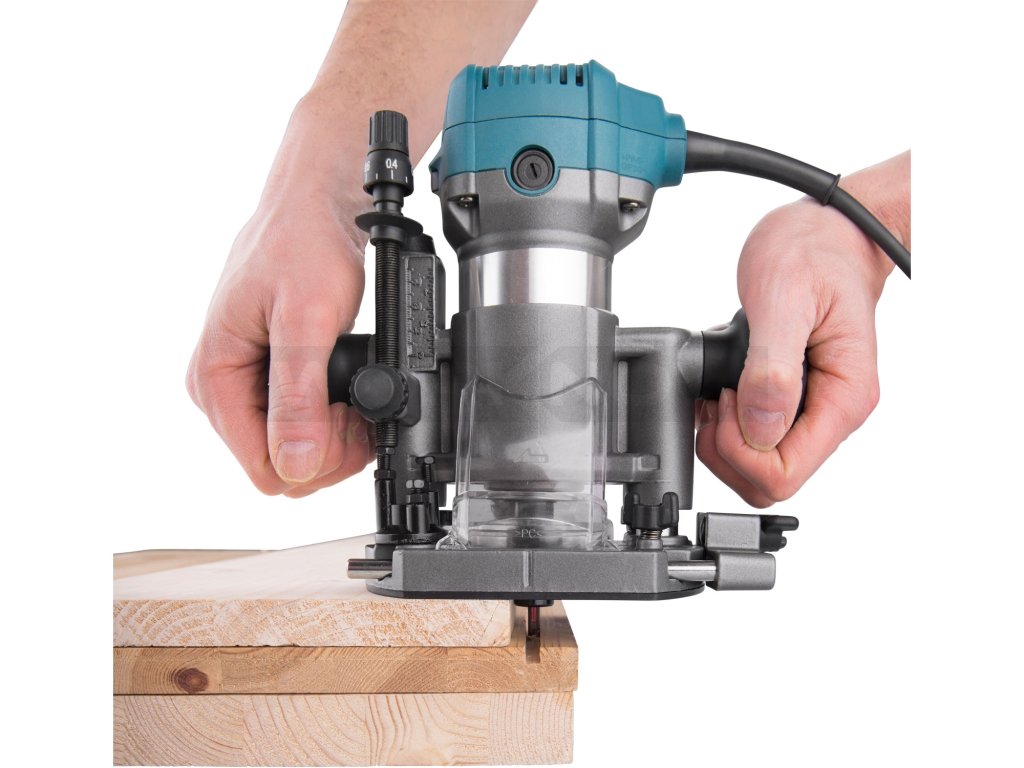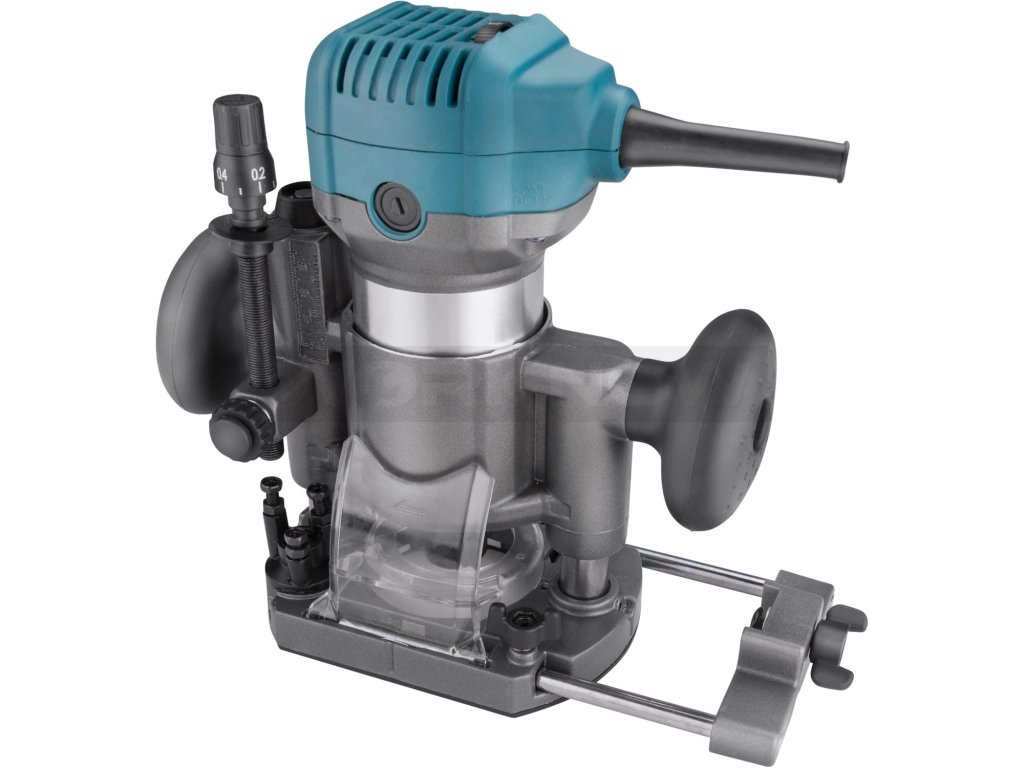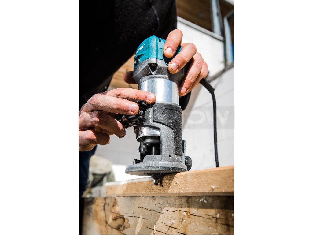 Frézka je určena k frézování hran, profilů, otvorů do dřeva s různými tvary v závislosti na tvaru použité frézy. Frézka může pracovat s frézami se stopkou 6 a 8mm. Srdcem frézky je silný 710W motor s regulací otáček v rozsahu 13000-33000/min, který umožňuje přizpůsobit rychlost typu materiálu. Dále je vybavena elektronickou kontrolou otáček, která jí umožňuje mít konstantní otáčky i při zatížení a funkcí "soft start" zajišťující hladký start bez nárazů. Pro přesnou práci je zanořovací základna vybavena hloubkovou zarážkou s možností přesného posunu v řádu desetin milimetru. Při práci s tvrdým dřevem můžete využít revolverovou zarážku pomocí, které si rozdělíte frézovanou hloubku do několika vrstev a postupně je budete odebírat. Balení obsahuje tři různé základny: zanořovací, jednoruční a základnu s rukojetí. Dále lze dokoupit předsazenou základnu vhodnou pro práce u stěn. Frézka lze snadno vyjmout ze základny a vložit do jiné základny v závislosti na prováděné práci. Tato modularita výrazně usnadňuje a zrychluje práci.
