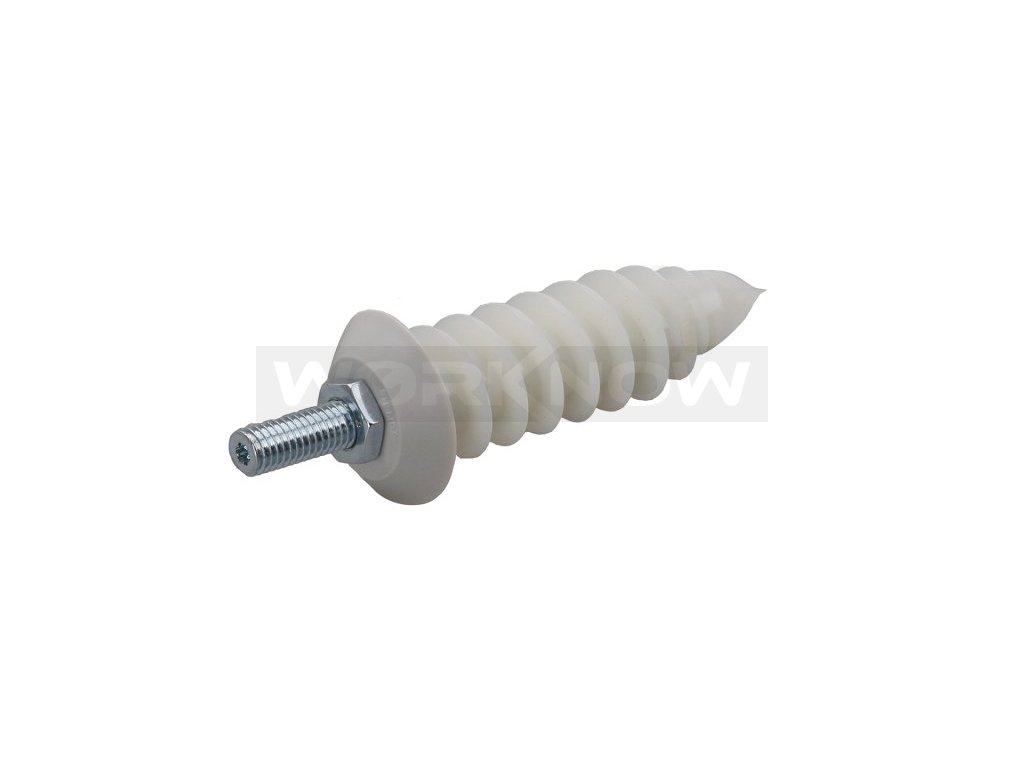 - materiál : hmoždinka - nylon polyamid PA6, šroub: Ocel 4.6 podle DIN EN ISO 898-1, krytka - HDPE vysokohustotní polyetylen, podložka - XPE expandovaný polyetylen