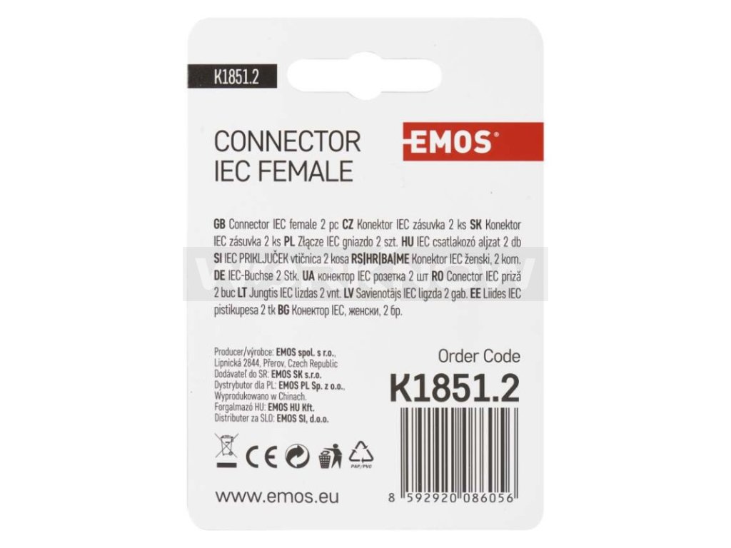 Konektor IEC zásuvka šroubovací úhlový K1851.2