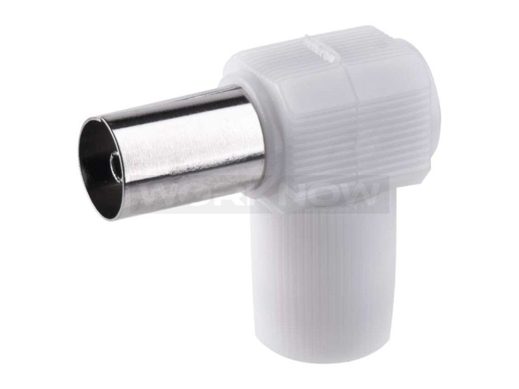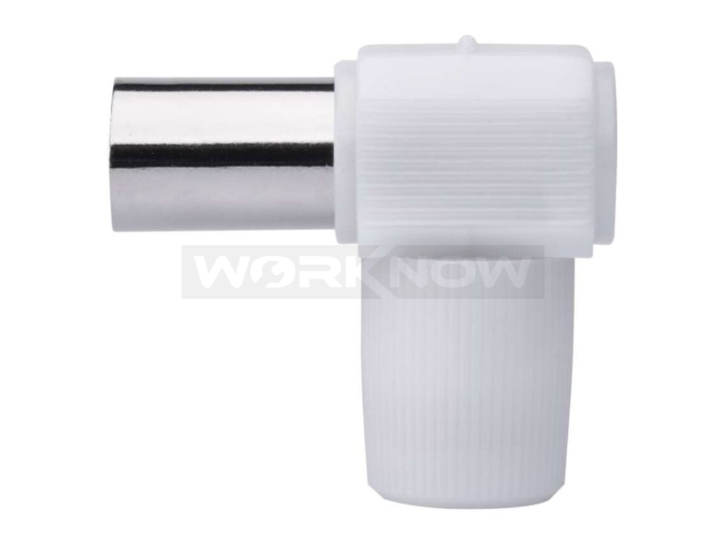 IEC konektor úhlová zásuvka je určen k napojení na koaxiální kabel a má bílou barvu. Prodává se po 10 ks a je plastový.