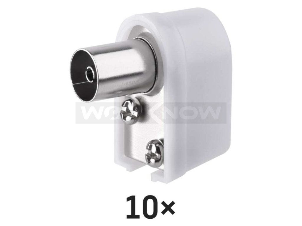 IEC konektor úhlová zásuvka je určen k napojení na koaxiální kabel a má bílou barvu. Prodává se po 10 ks a je plastový.