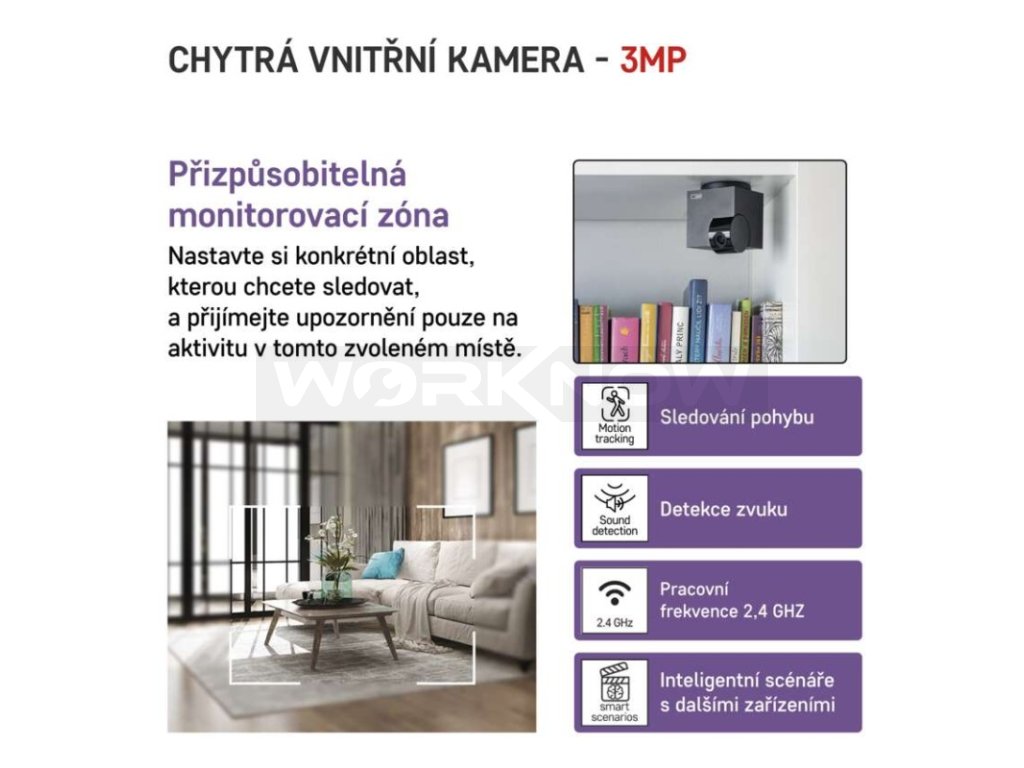 Můžete také nastavit specifickou zónu detekce pohybu a sledovat pouze určenou část prostoru. Díky technologii WebRTC jsou všechny funkce kamery, včetně hlasové a video komunikace, dostupné i přes webový prohlížeč.