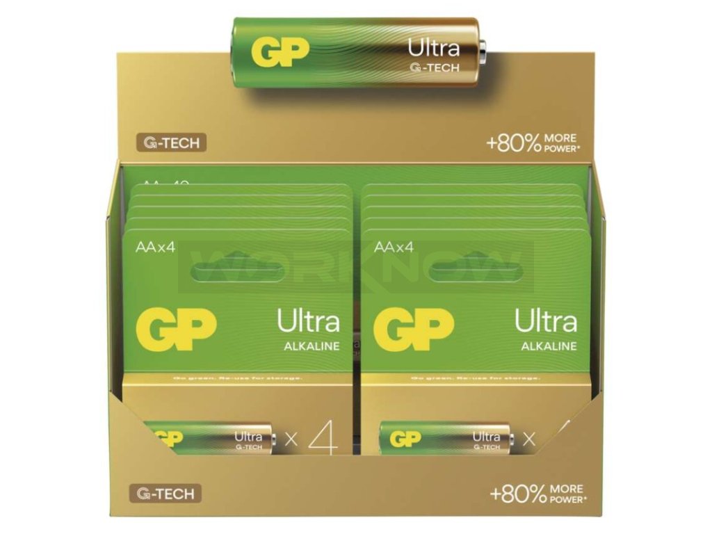Vylepšená řada GP alkalických baterií ULTRA přináší nárůst výkonu a nepřetržitého provozu až o 80 %, čímž je ideální pro dlouhé chvíle strávené s rodinou a další aktivity, které vyžadují spolehlivý zdroj energie. Navrženy s důrazem na zlepšení výkonu a účinnosti, budou baterie ULTRA jedinečnou volbou pro snadný chod vaší domácnosti.