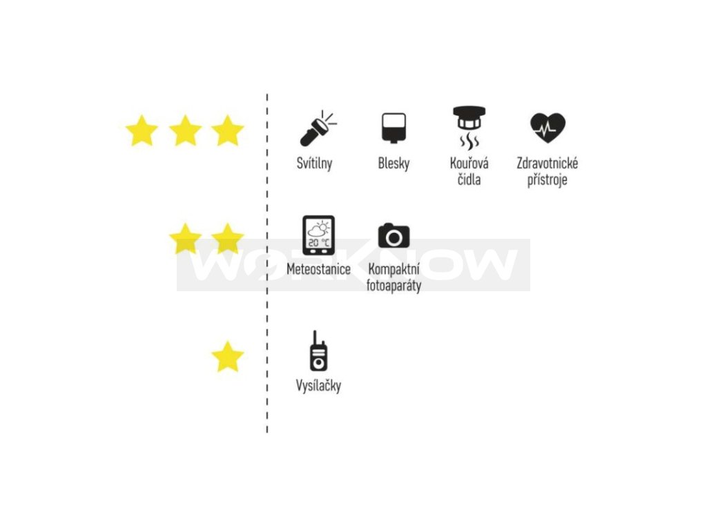 Podává vynikající výkon při maximálním odběru proudu - až 7× výkonnější než běžná alkalická baterie stejné velikosti. Extrémně dlouhá skladovatelnost až 10 let.