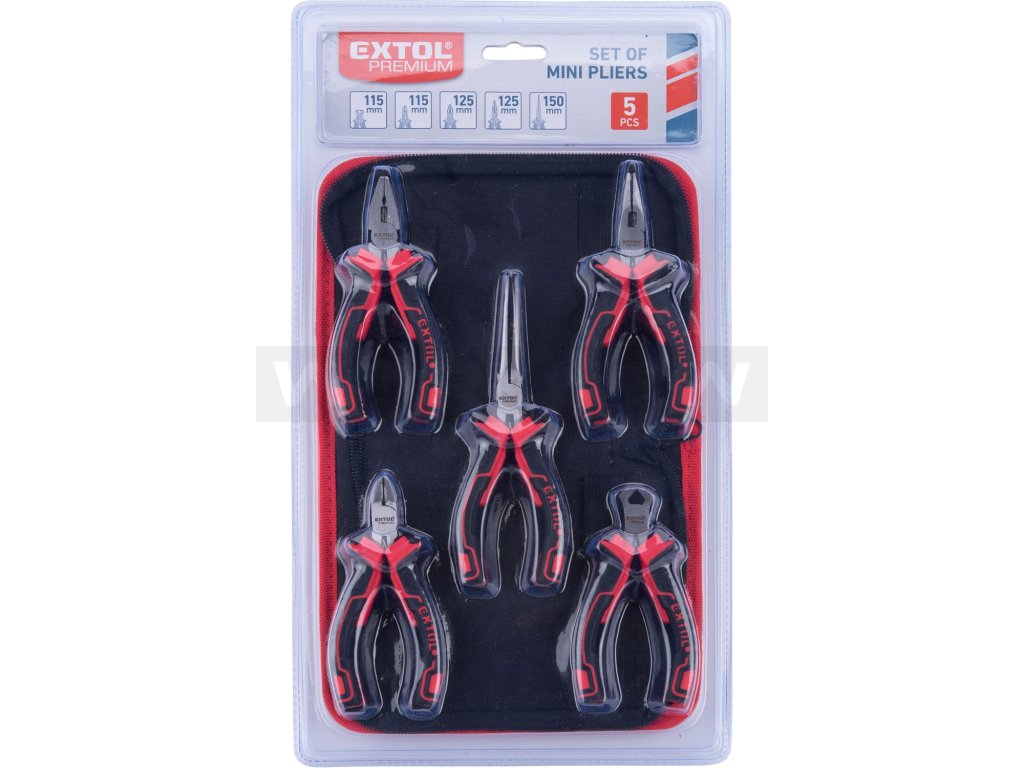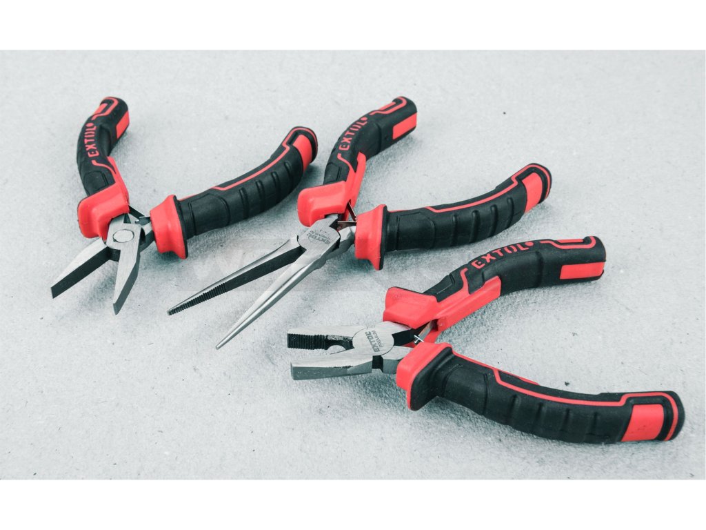 | Doplňující parametr: | kleště kombinované 125mm, štípací boční a čelní 115mm, půlkulaté přímé 125mm a půlkulaté přímé s dlouhými čelistmi 150mm v nylon |