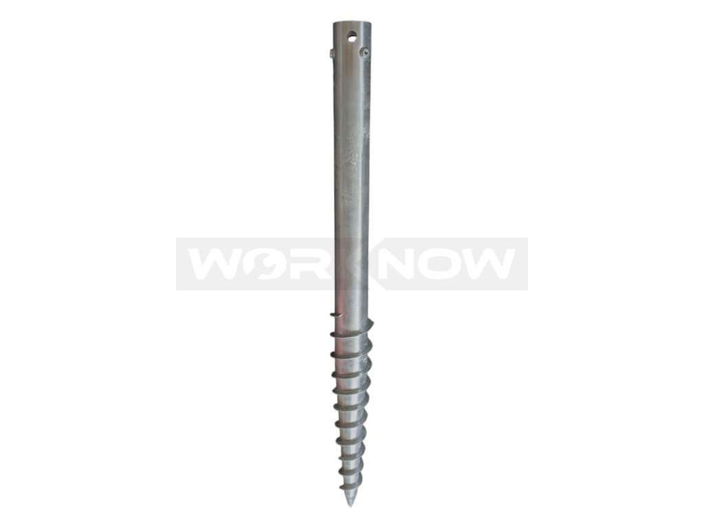 Ocelový zemní vrut s povrchovou úpravou v žárovém zinku s kruhovým otvorem 68 mm. Součástí vrutu jsou 3 ks navařených matic M8 pro ukotvení prvku o tloušťce 25 – 65 mm. Pojistné šrouby nejsou součástí balení a jejich velikost je nutné zvolit podle tloušťky kotveného prvku.