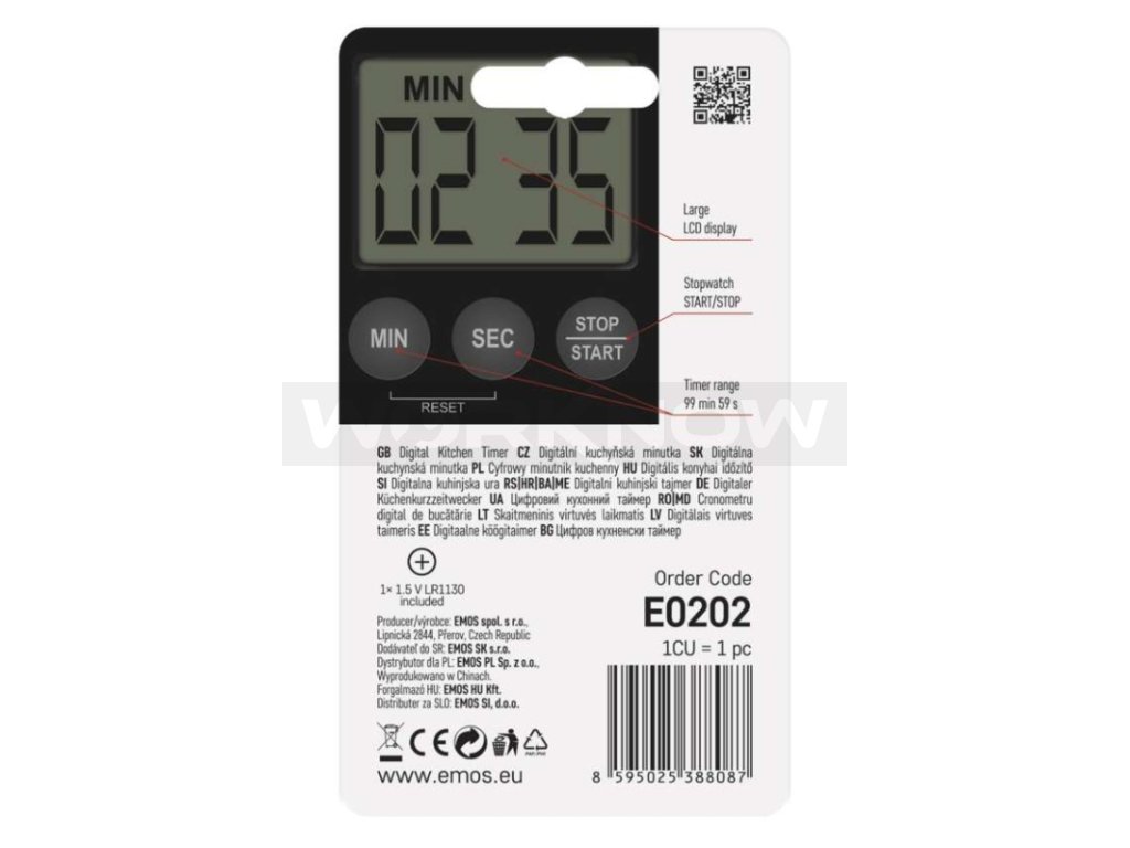 Digitální kuchyňská minutka pro použití v každé kuchyni. Kuchyňská minutka má funkci odpočítávání času nebo lze nastavit stopky. Na zadní straně má minutka magnet pro jednoduché uchycení.