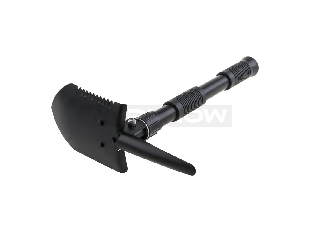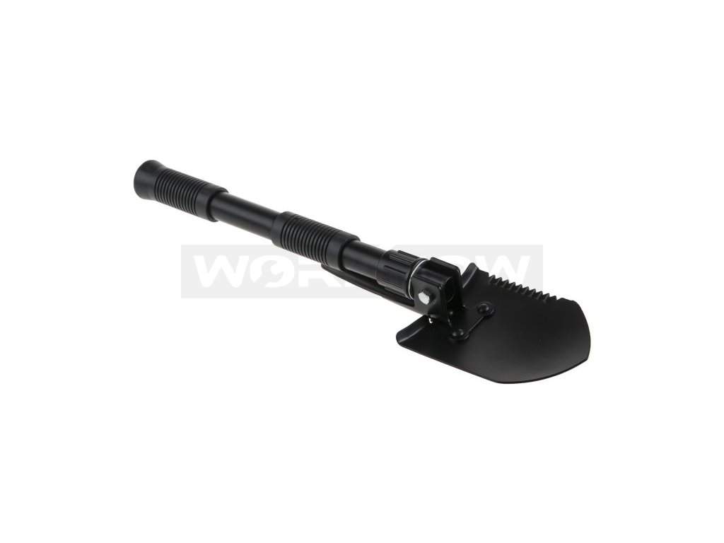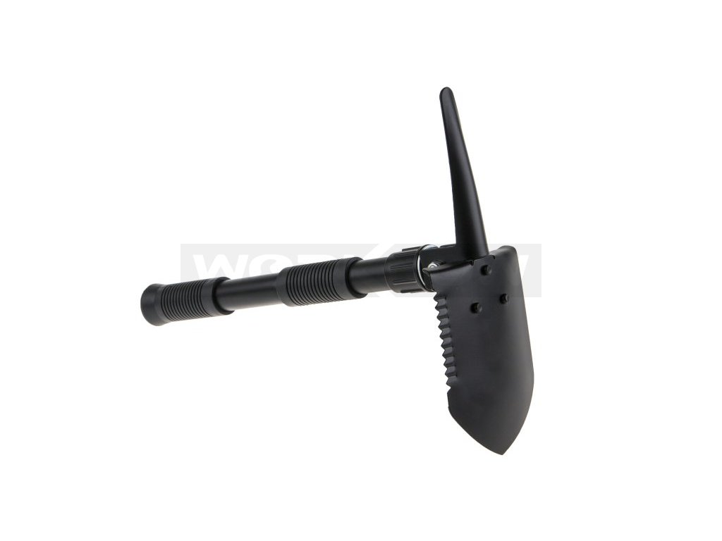 Malá skládací lopatka s hrotem. Lze použít jako lopatka, rýč, motyka, pila, víceúčelový hrot. Dvě gumové protiskluzové rukojeti. Vyrobeno z ocelového plechu a trubek. Odolný nylonový obal s poutkem na opasek.Dodatočné parametre