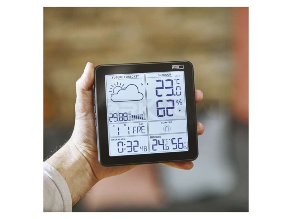 Malé nástěnné teploměry pověšené u okna jsou už dávno minulostí! Moderní meteostanice totiž neinformují pouze o aktuální teplotě, ale umí toho mnohem více. Díky domácí bezdrátové meteostanici E5080 nemusíte ráno před odchodem do práce zkoumat oblohu a snažit se uhodnout, jaké bude během dne počasí. Stačí jeden pohled na displej a budete mít jasno! Samozřejmostí je měření všech základních veličin (teplota, vlhkost, tlak). Meteostanice měří venkovní teplotu v rozmezí -40 °C až +70 °C a vnitřní teplotu v rozmezí -10 °C až +50 °C, v obou případech s rozlišením 0,1 °C. Pojďte se podívat, co dalšího domácí bezdrátová stanice umí.