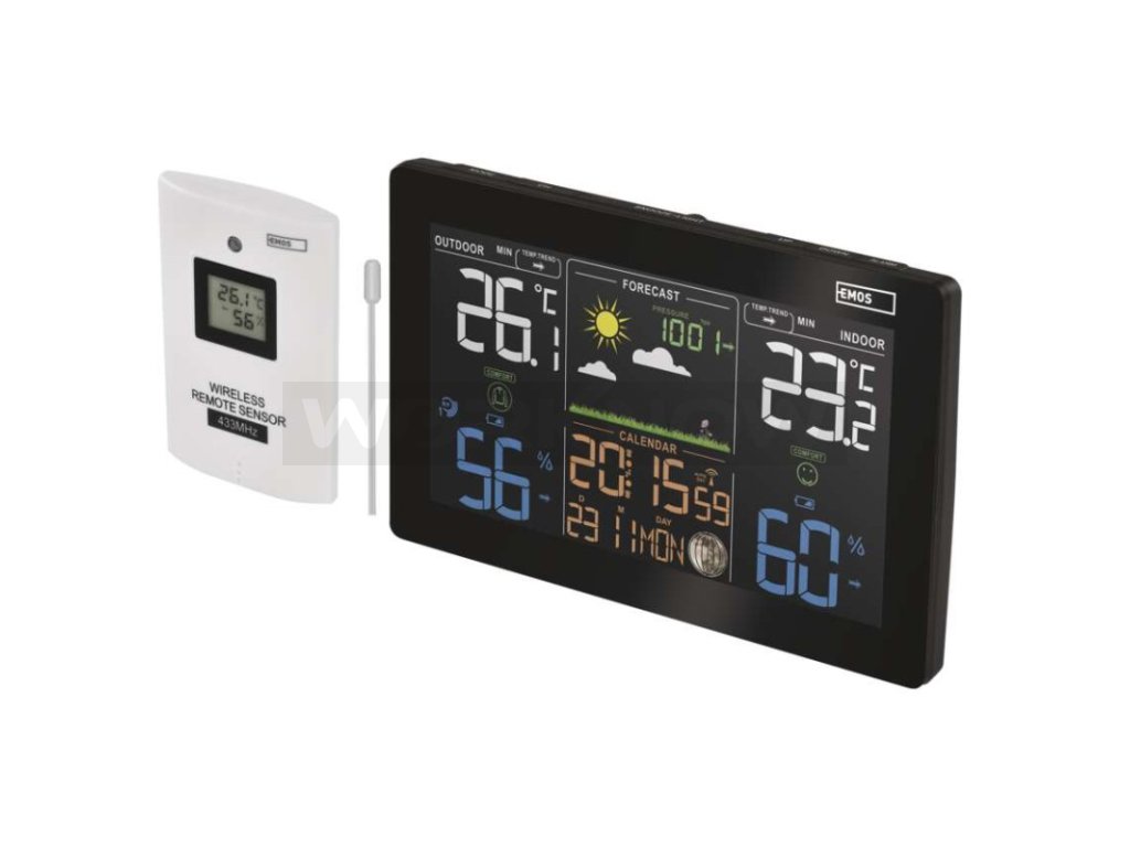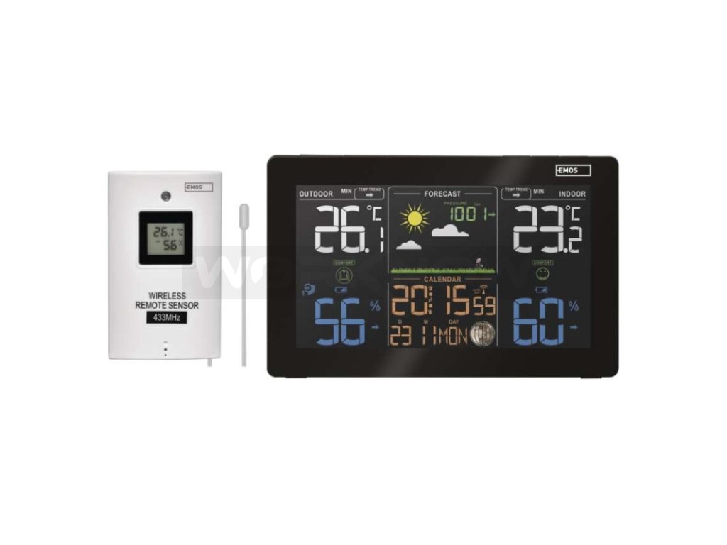 Potřebné hodnoty zajišťuje čidlo, které má dosah až 50 metrů. Celkem je možné použít až 3 čidla. Budete tak mít přehled o teplotě na různých místech, například ve sklepě, v zimní zahradě, na půdě apod. Nechybí ani barometr, který zprostředkovává údaje o atmosférickém tlaku.