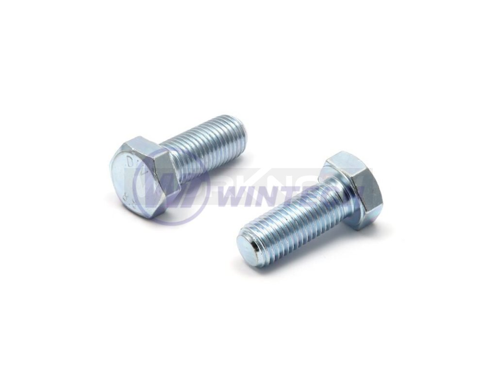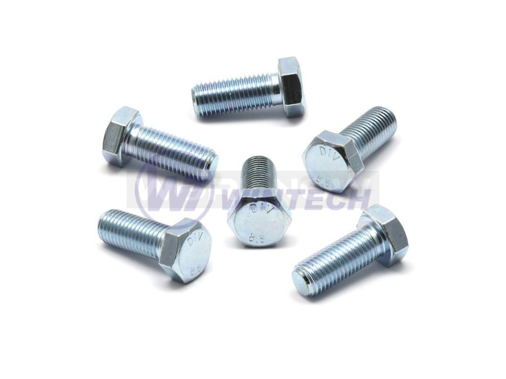 Šroub DIN 933, šestihranná hlava, třída oceli 8.8, rozměr M16 x 20 celý závit, zinek bílý