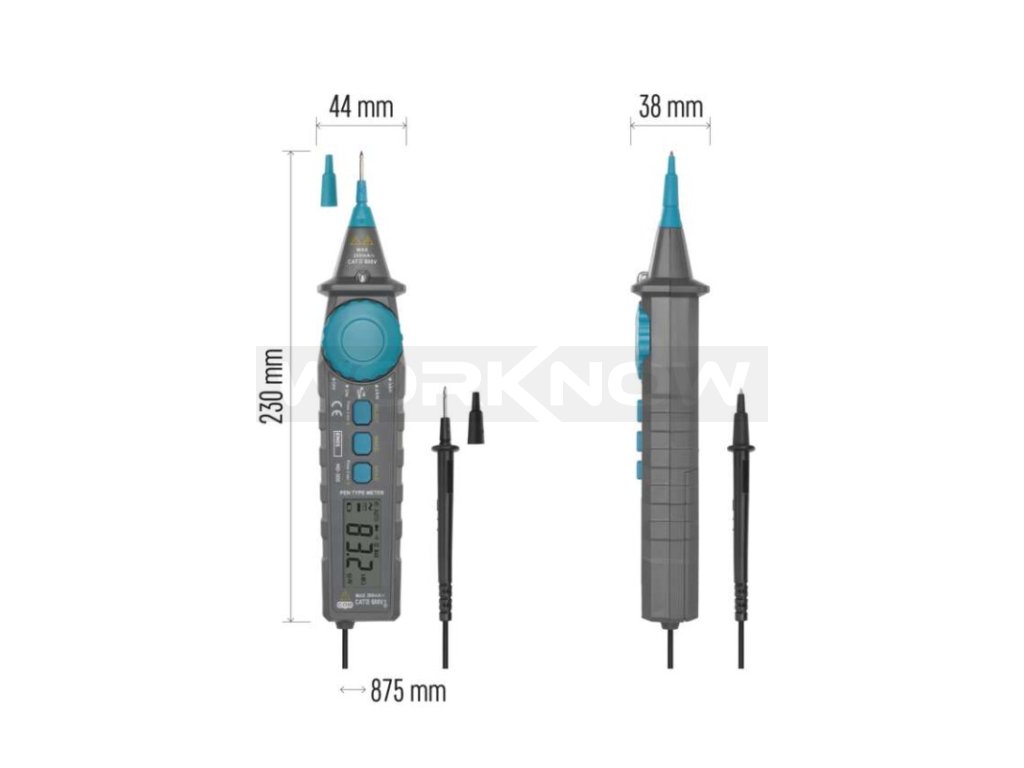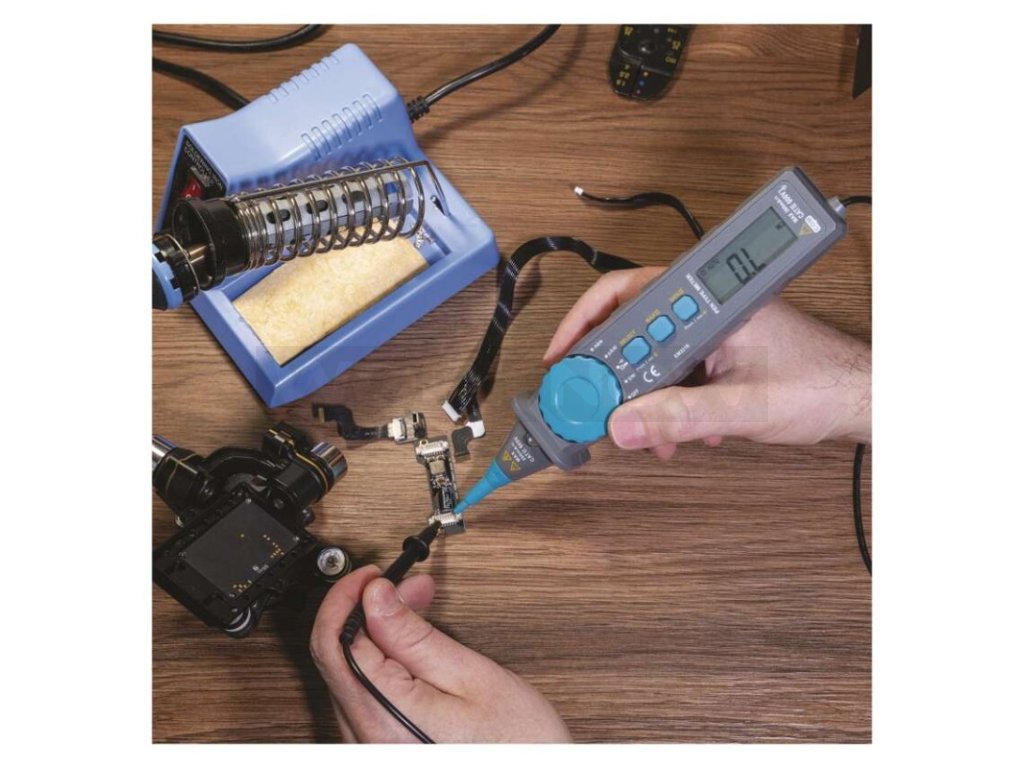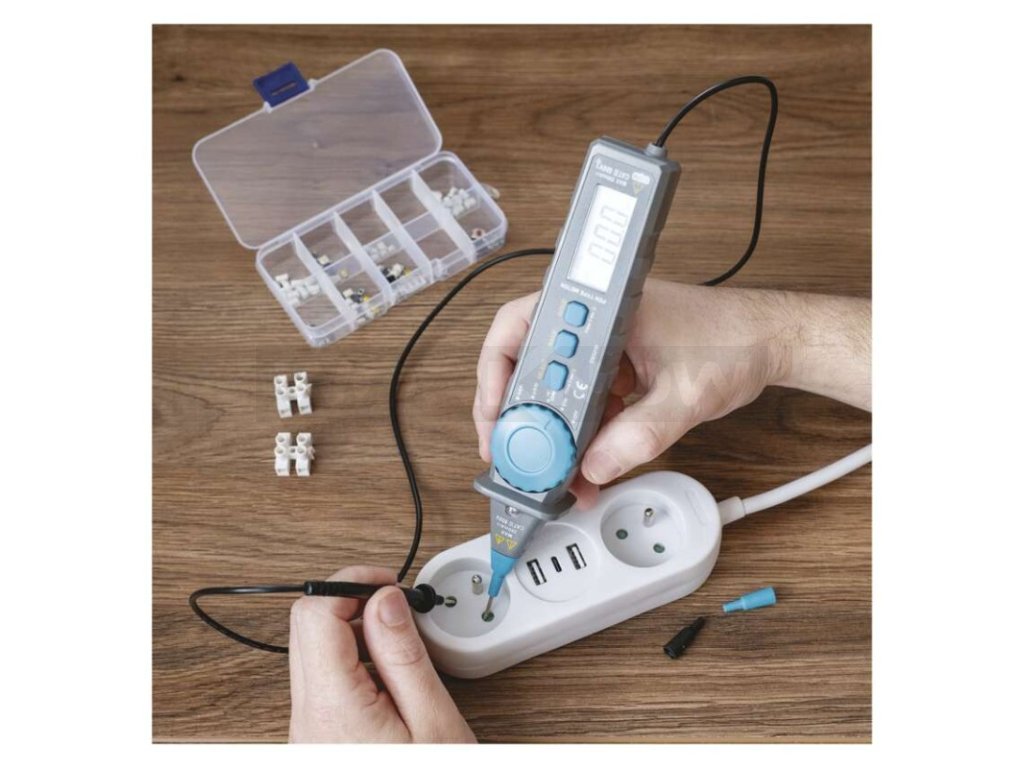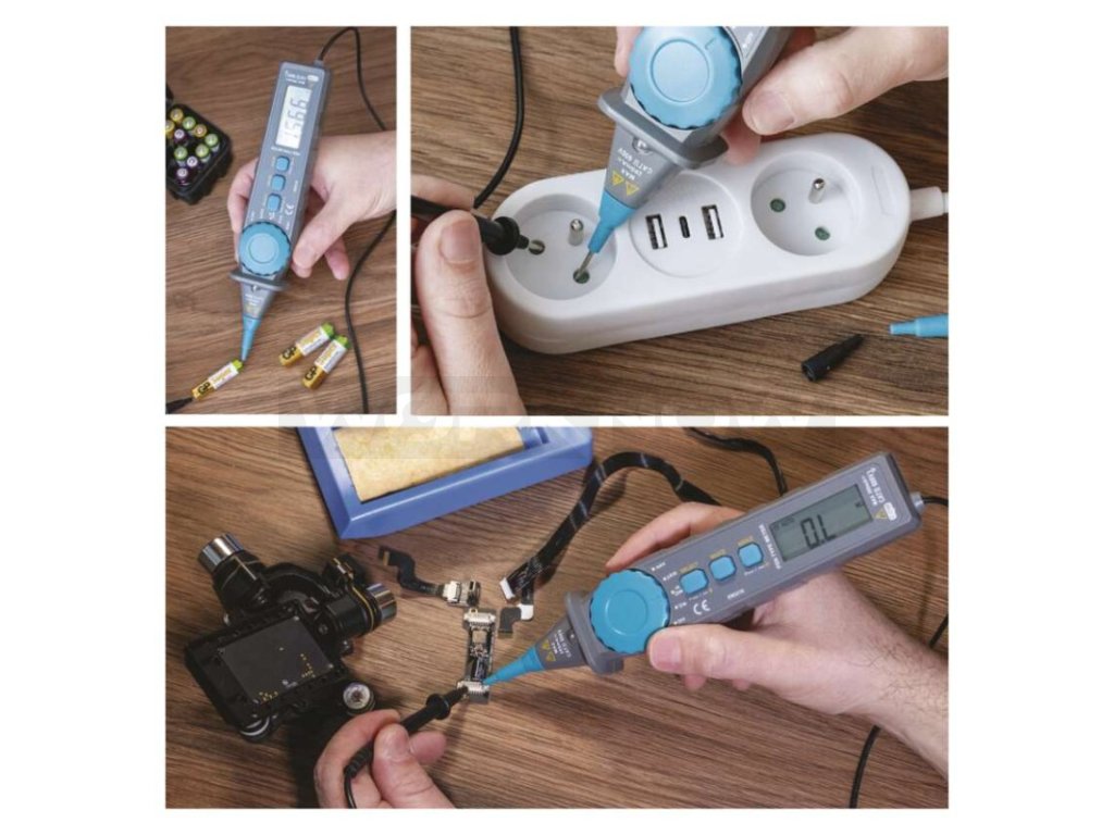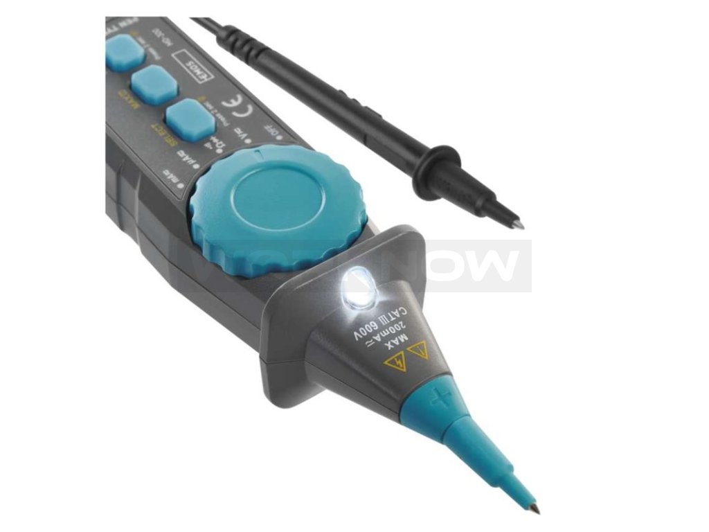 Jednoduché ovládání jednou rukou pomocí otočného kolečka zajistí přesné měření střídavého i stejnosměrného napětí do 600 V, stejnosměrný proud i odpor a provádět můžete také test diod. Pomocí odnímatelné krytky na měřícím hrotu se jednodušeji dostanete do elektrických zásuvek.
