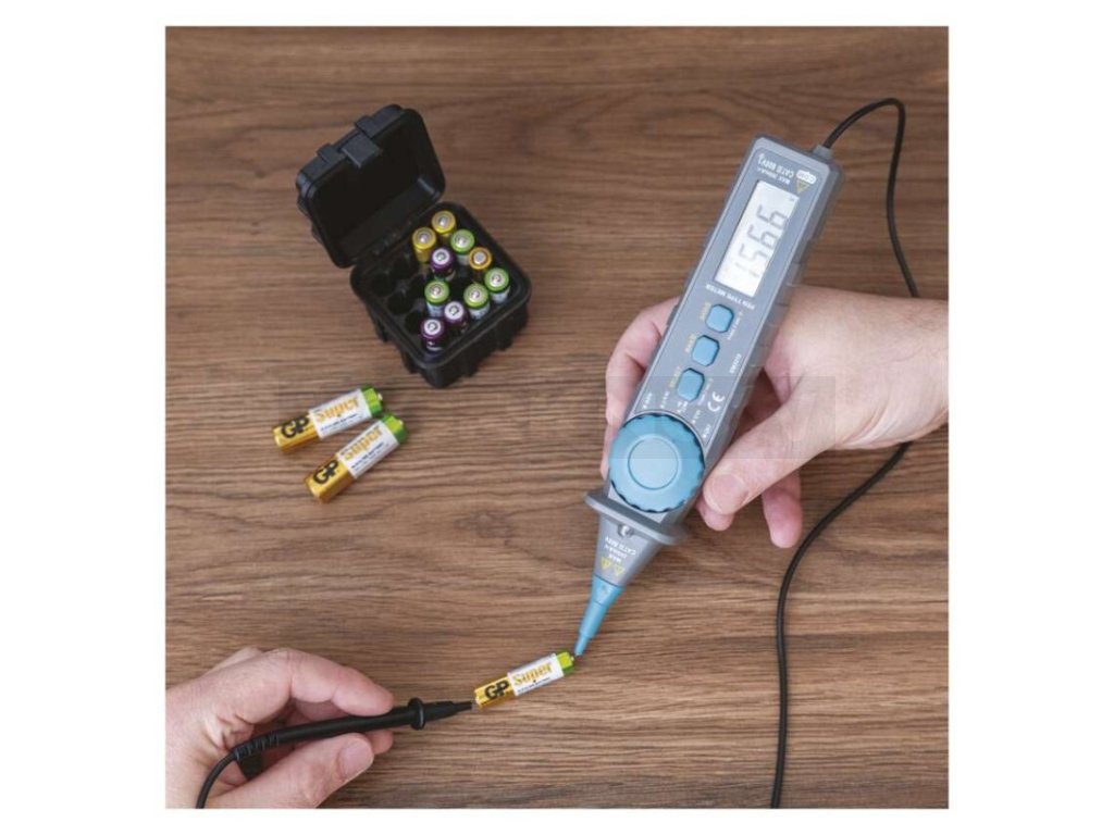 Napájení zajišťuje 2× AAA baterie, které jsou součástí balení společně s měřícími hroty, takže je multimetr připraven okamžitě k práci. Navíc díky automatickému vypnutí a indikaci slabé baterie se nestane, že budete muset přerušit svoji práci.
