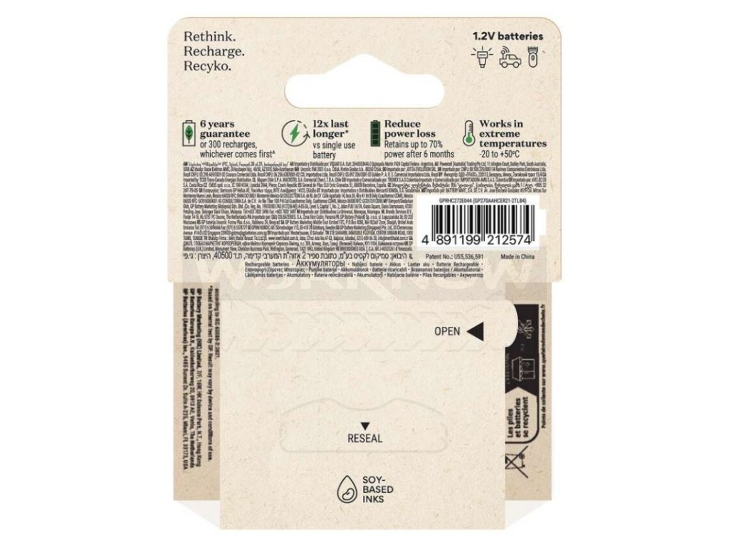 Společnost GP se nezaměřuje pouze na výrobu špičkových výrobků, ale aktivně hledá způsoby, jak snížit ekologický dopad svých produktů a jejich obalů. Jejich inovativní řada dobíjecích baterií a nabíječek s názvem Recyko je příkladem této snahy. Tyto produkty jsou baleny v papírových obalech, které neobsahují žádné plasty. Tím podporují používání recyklovaných materiálů a snižují množství odpadu. S těmito obaly šetrnými k naší planetě můžete být součástí pozitivní změny i vy! Přispějte ke snižování ekologické zátěže.