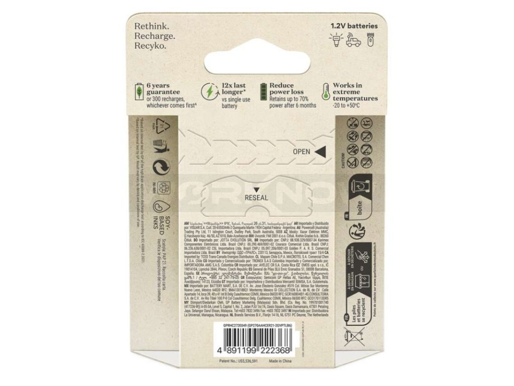 Společnost GP se nezaměřuje pouze na výrobu špičkových výrobků, ale aktivně hledá způsoby, jak snížit ekologický dopad svých produktů a jejich obalů. Jejich inovativní řada dobíjecích baterií a nabíječek s názvem Recyko je příkladem této snahy. Tyto produkty jsou baleny v papírových obalech, které neobsahují žádné plasty. Tím podporují používání recyklovaných materiálů a snižují množství odpadu. S těmito obaly šetrnými k naší planetě můžete být součástí pozitivní změny i vy! Přispějte ke snižování ekologické zátěže.