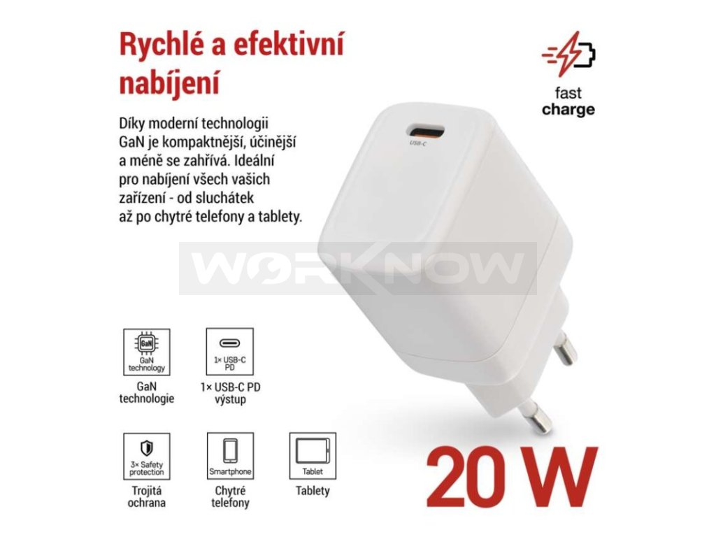Univerzální USB adaptér GaN do sítě PD 20 W max.