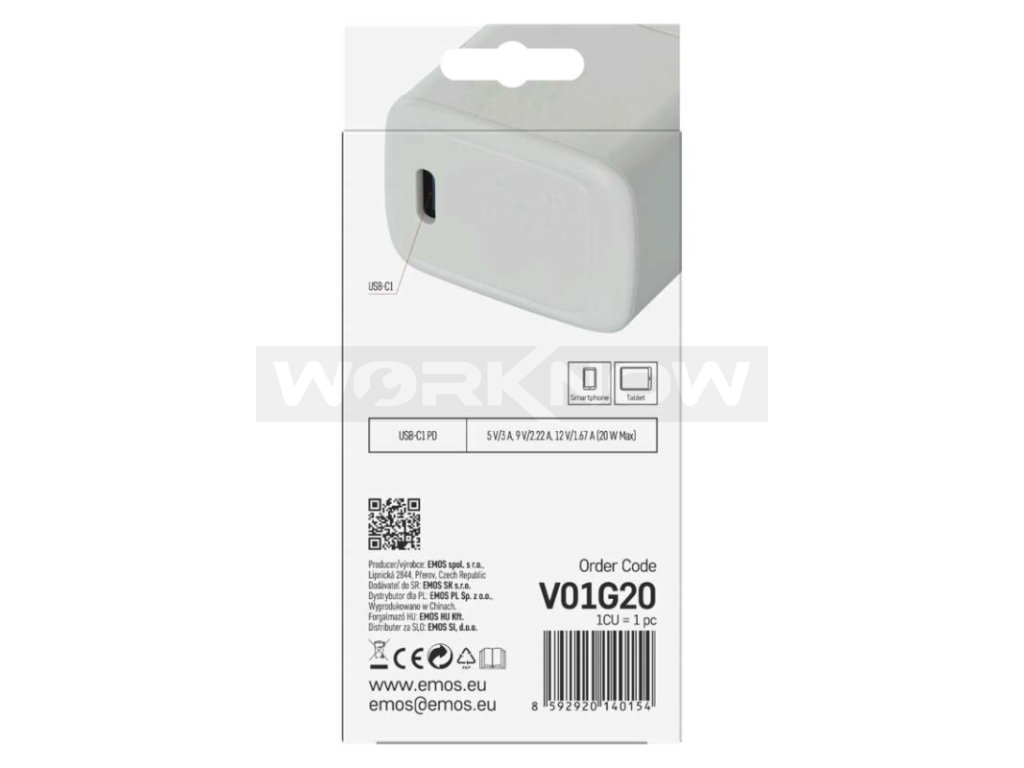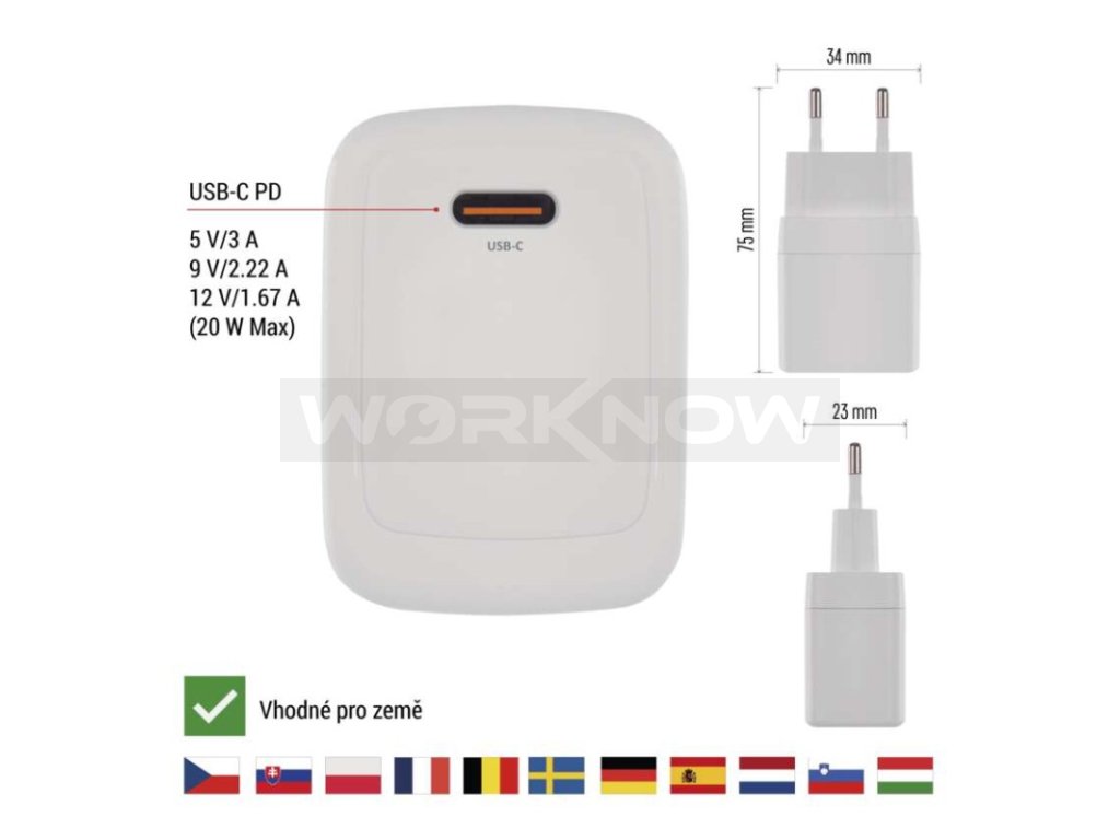 | Max. výstup 1× USB: | C: 5 V/3 A – 9 V/2,22 A – 12 V/1,67 A (20 W) |
