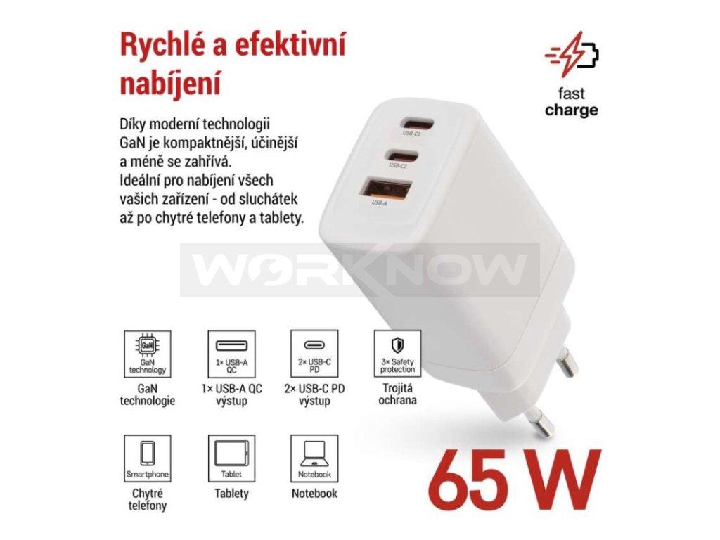 Univerzální USB adaptér GaN do sítě PD 65 W max.