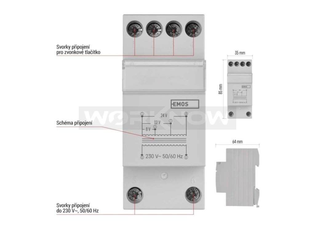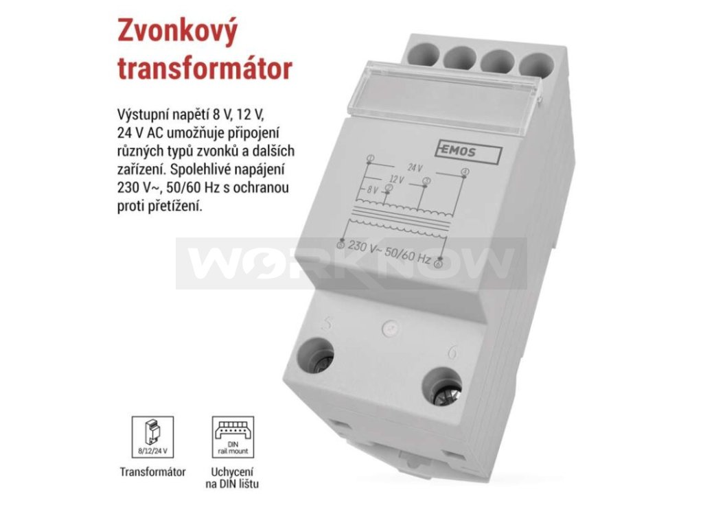 Zvonkový transformátor pro snížení napětí k napájení domovního zvonku.