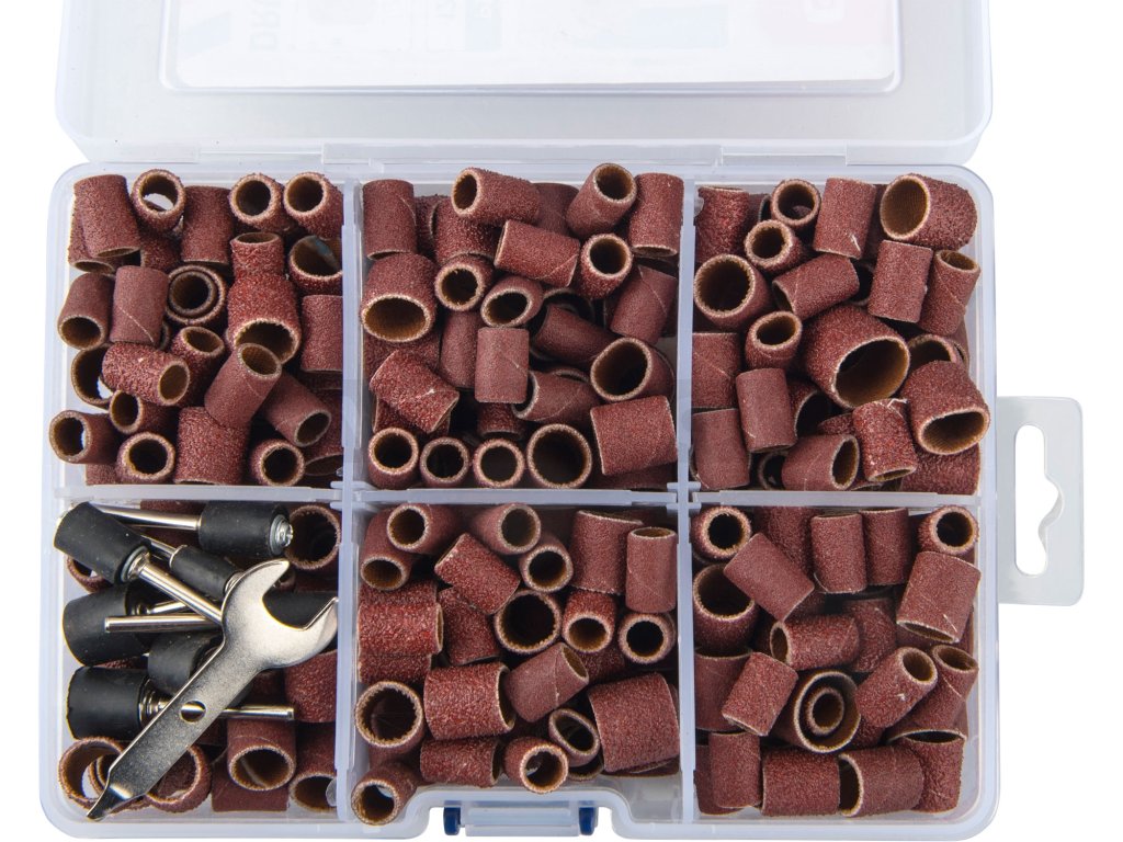 | Doplňující parametr: | brusné válce: P80 120×, P120 120×, P240 100×, ?9-12-14mm × 13mm, unašeč 9×: ?6,4-9,5-12,7mm, stopka ?3,2mm, plastová krabička s |