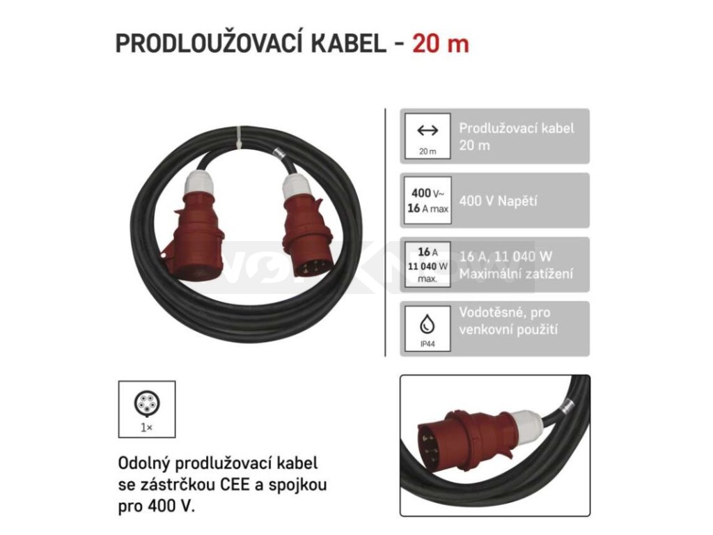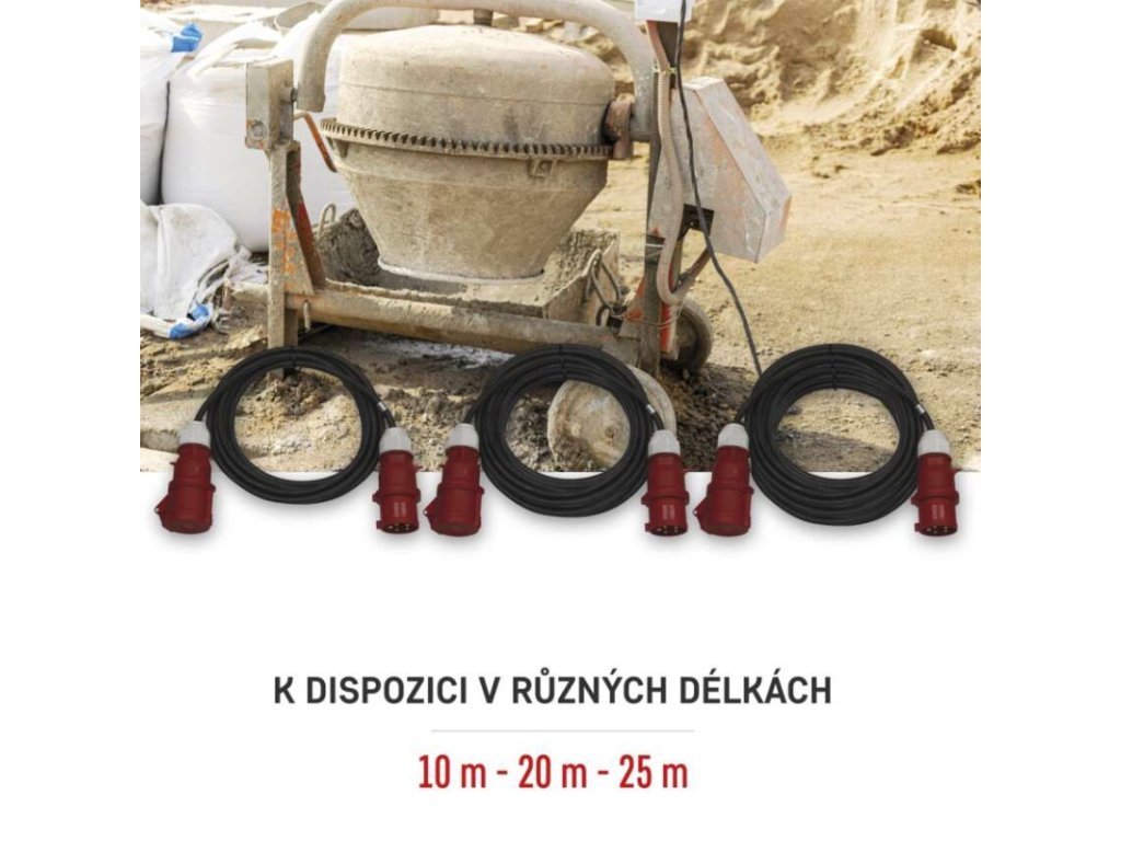 Gumový prodlužovací přívod 20 m na 400 V~ slouží k prodloužení elektrické energie tam, kam pevná zásuvka nedosáhne.